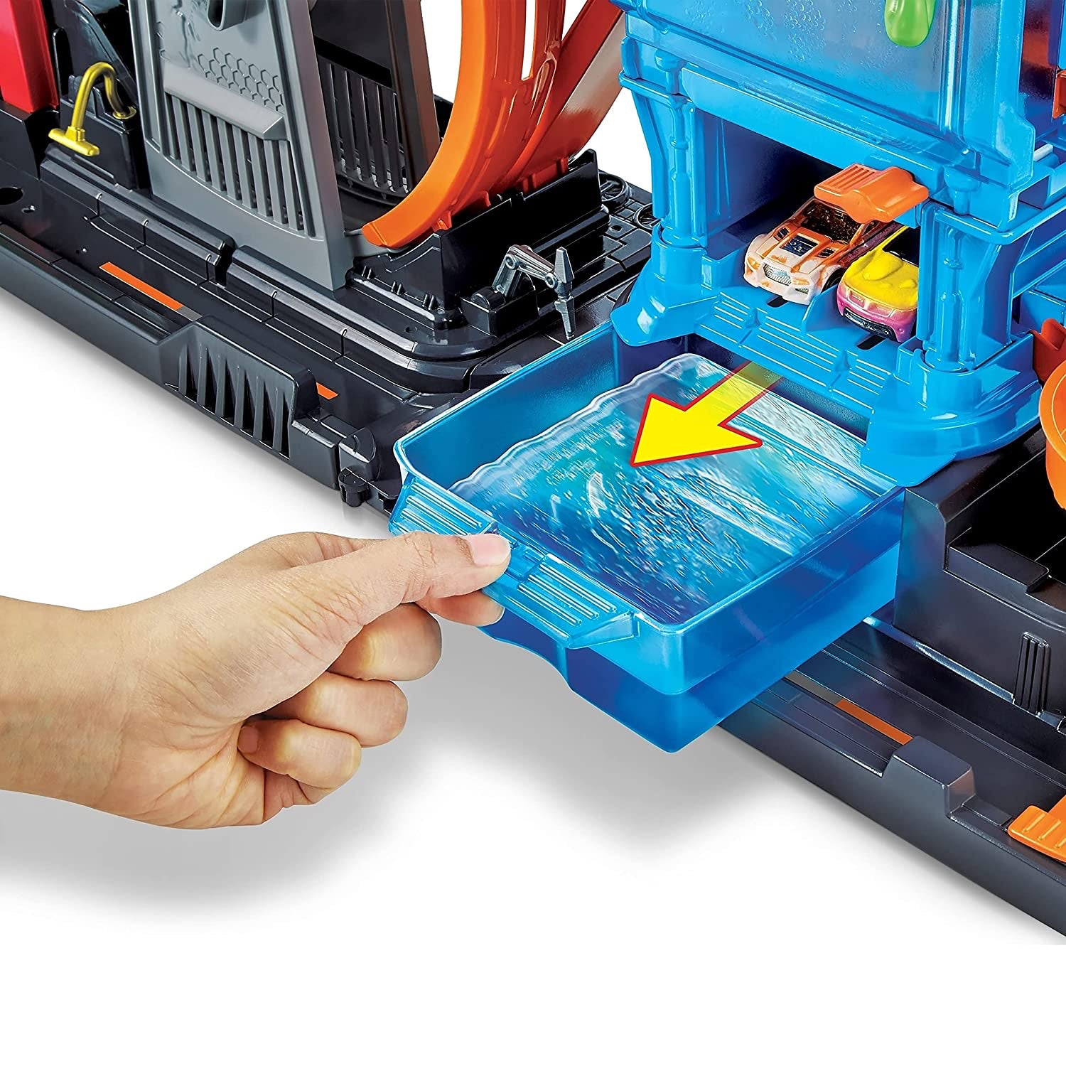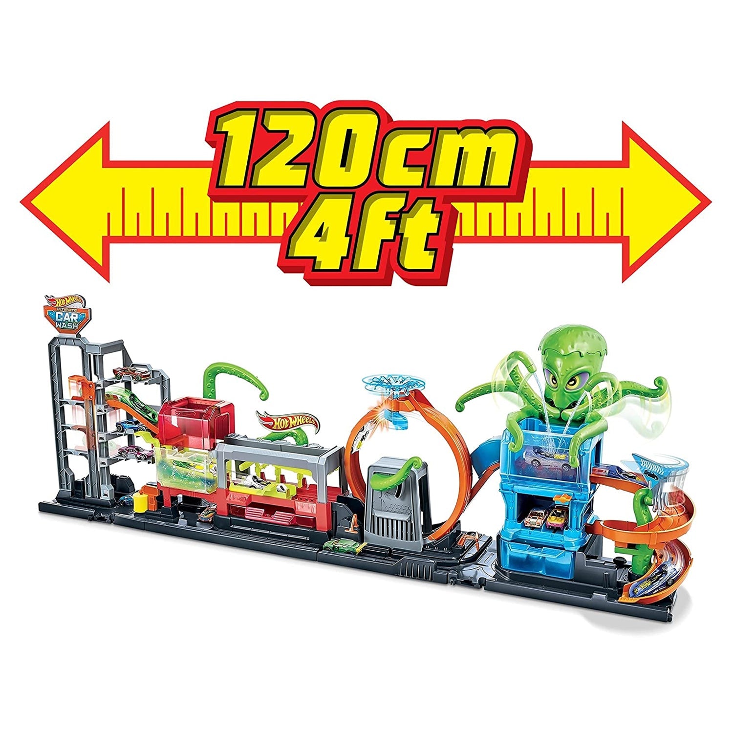 For hours of spectacular water play, splish, splash, and zoom around the Hot Wheels Ultimate Octo Car Wash Playset.