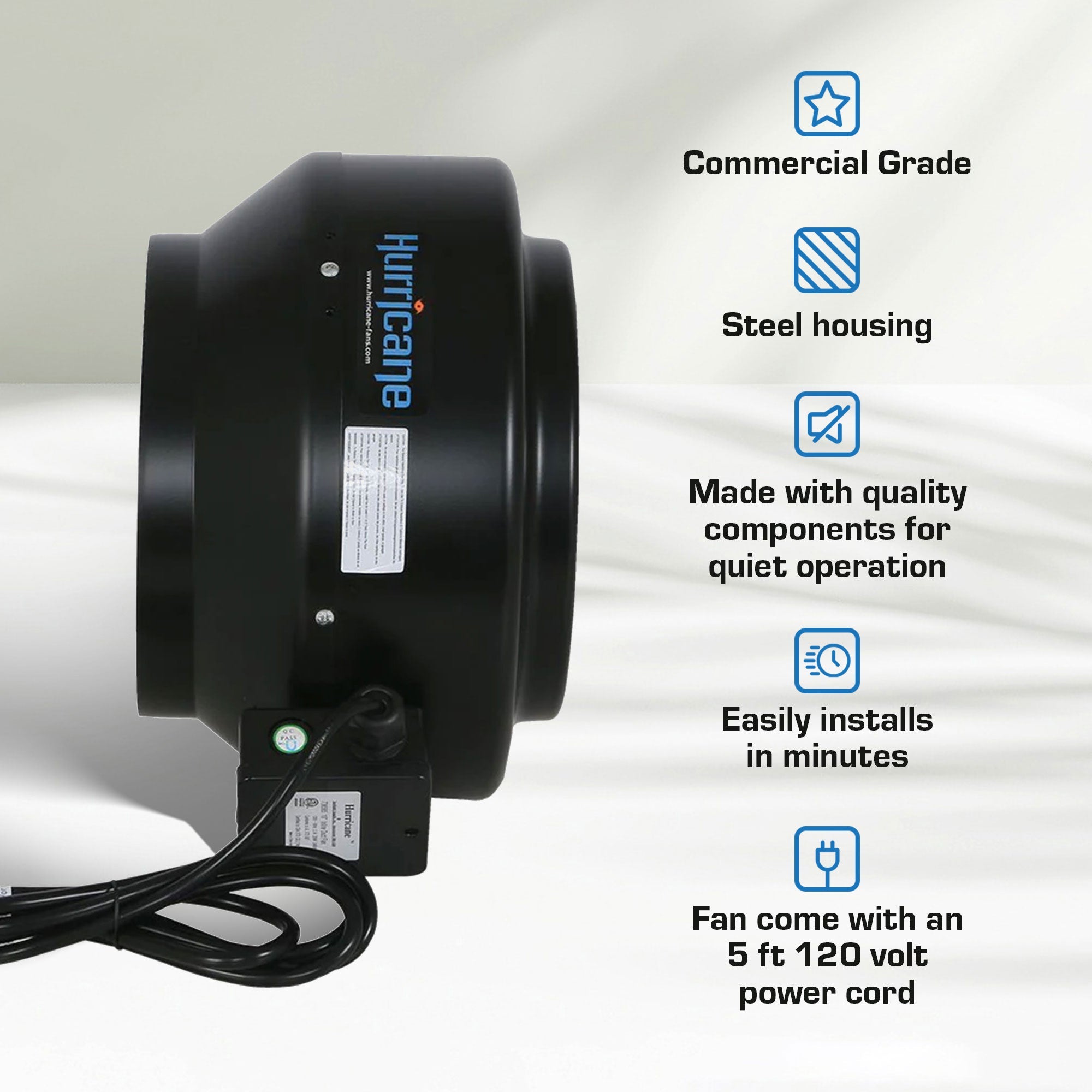Unleash the cyclonic force of these Hurricane Commercial Grade Inline Fans boast a formidable 10-inch powerhouse boasting a staggering 780 CFM. These inline marvels redefine high performance with their quality prowess. Encased in steel housing adorned with a robust powder-coated finish, these fans are not just robust, it's an industrial aesthetic statement.