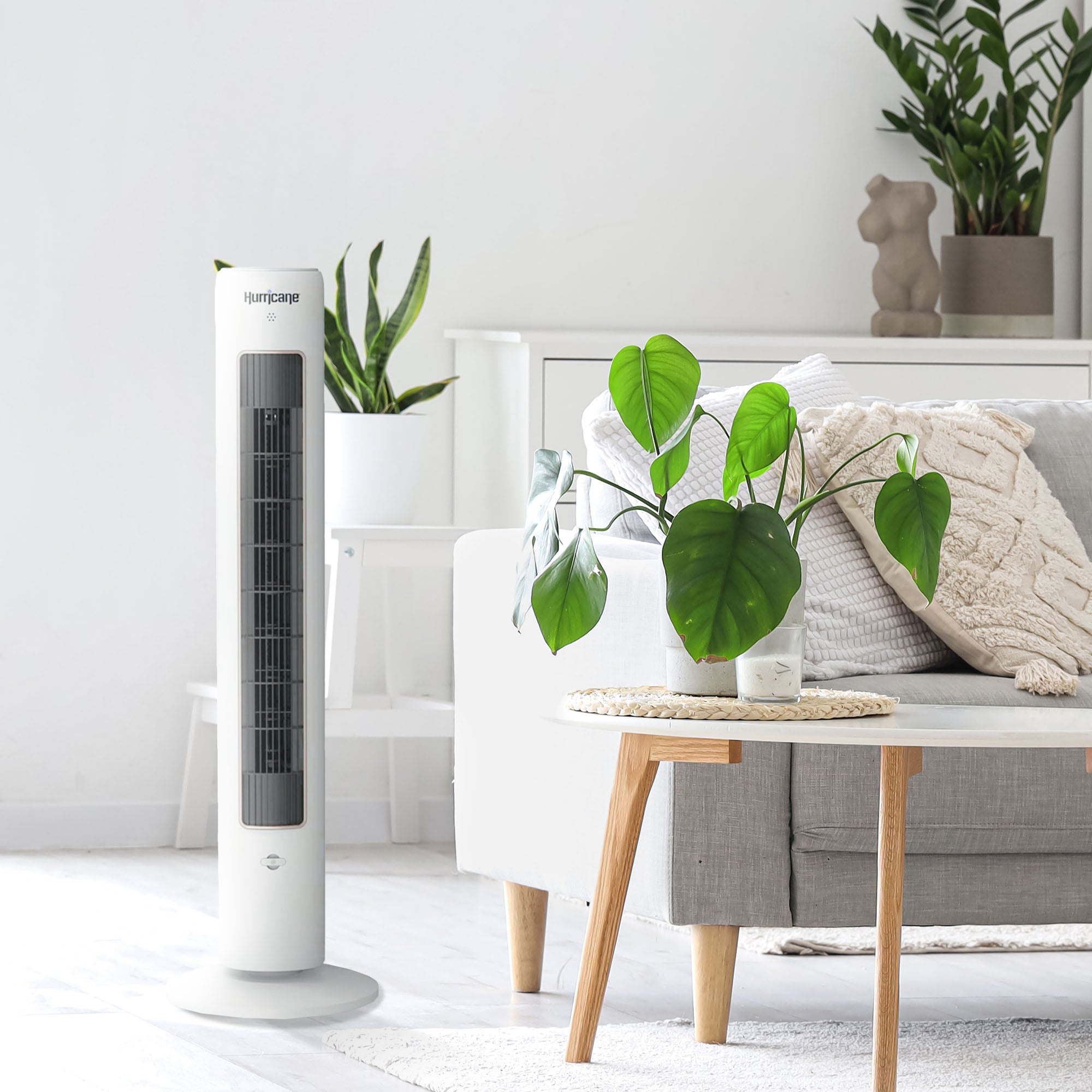 - With its 40-inch stature and modern design, the Hurricane at Home Tower Fan seamlessly integrates into any space, enhancing aesthetics while improving air quality