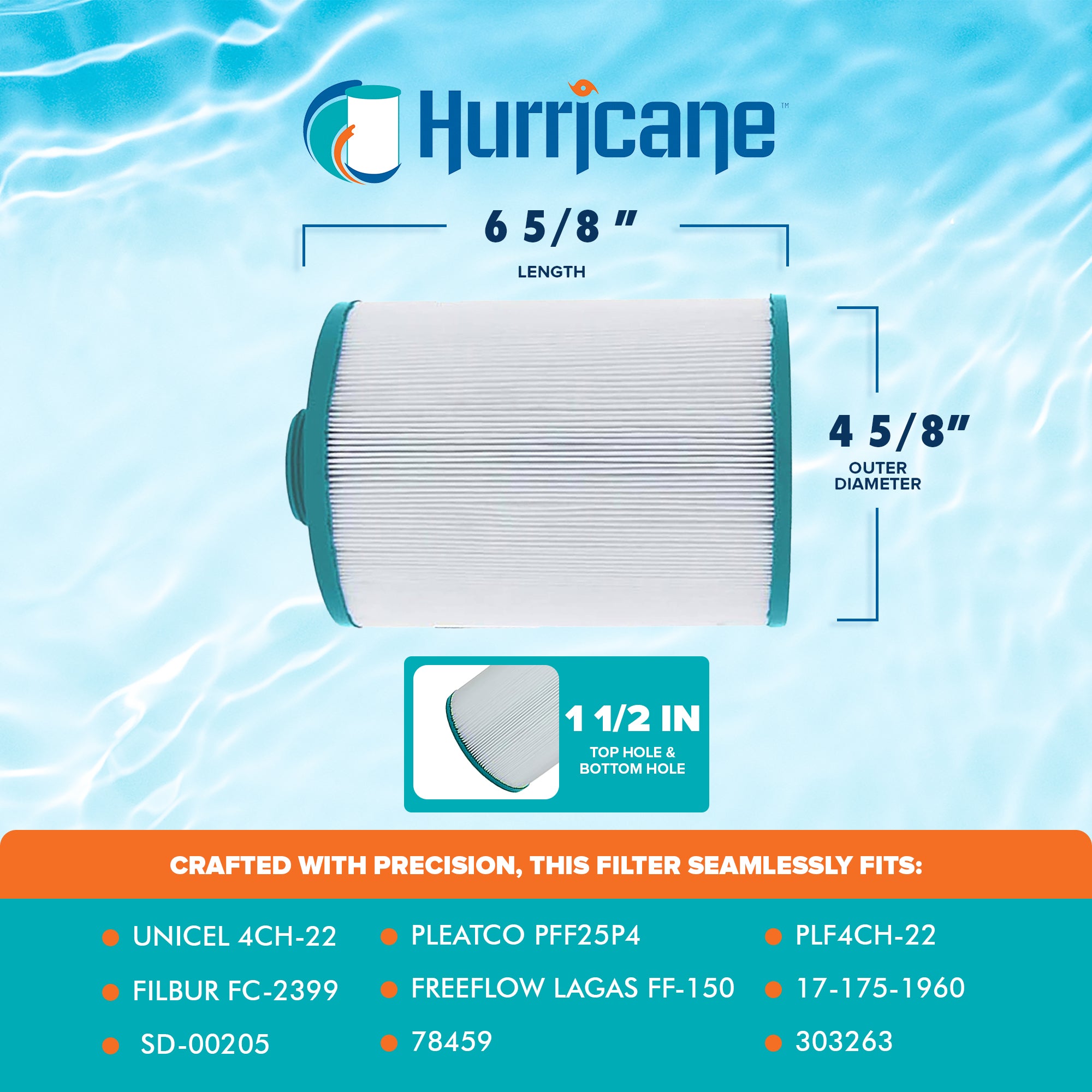 Hurricane Filters HF4H22-01 Advanced Spa Filter Cartridge Replacement for PFF25P4, Unicel 4CH-22, Filbur FC-2399, and Other Compatible Models