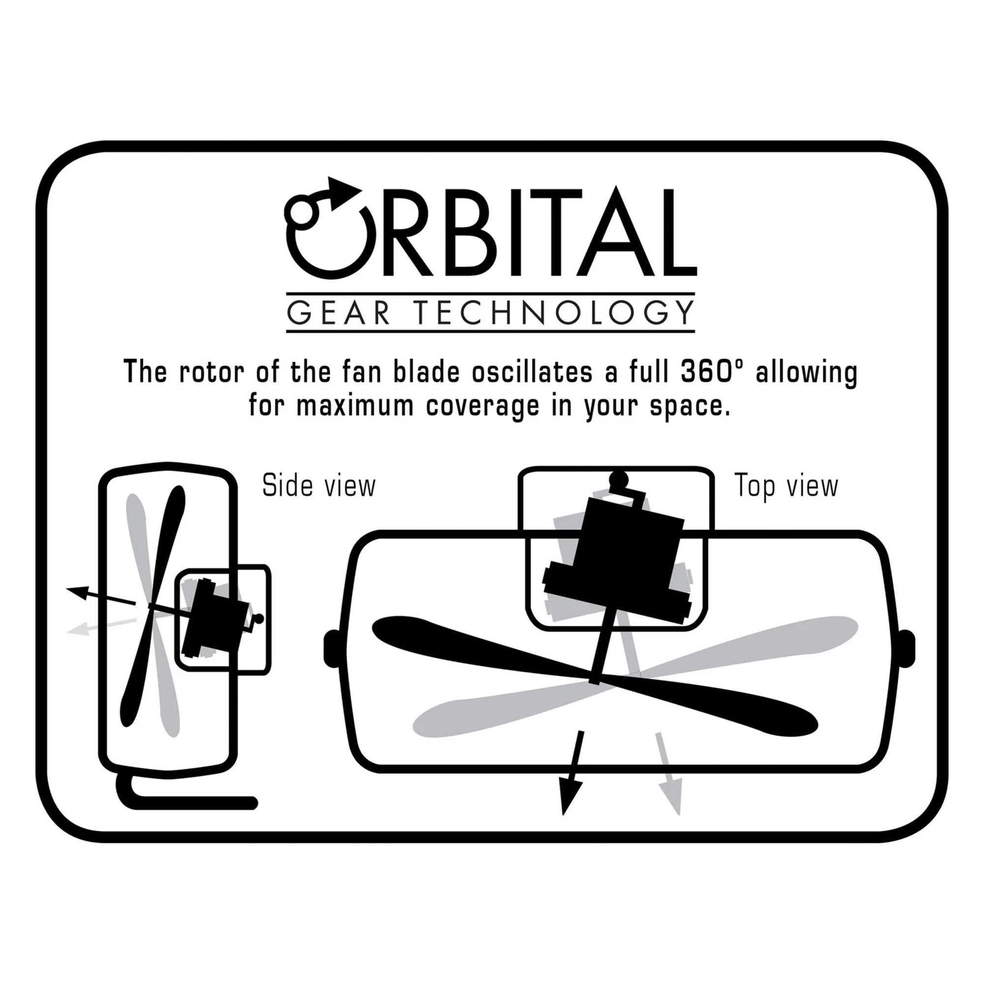 - Showcasing orbital gear technology, the fan's rotor oscillates a full 360 degrees, ensuring maximum coverage in your chosen space and creating a consistent breeze throughout