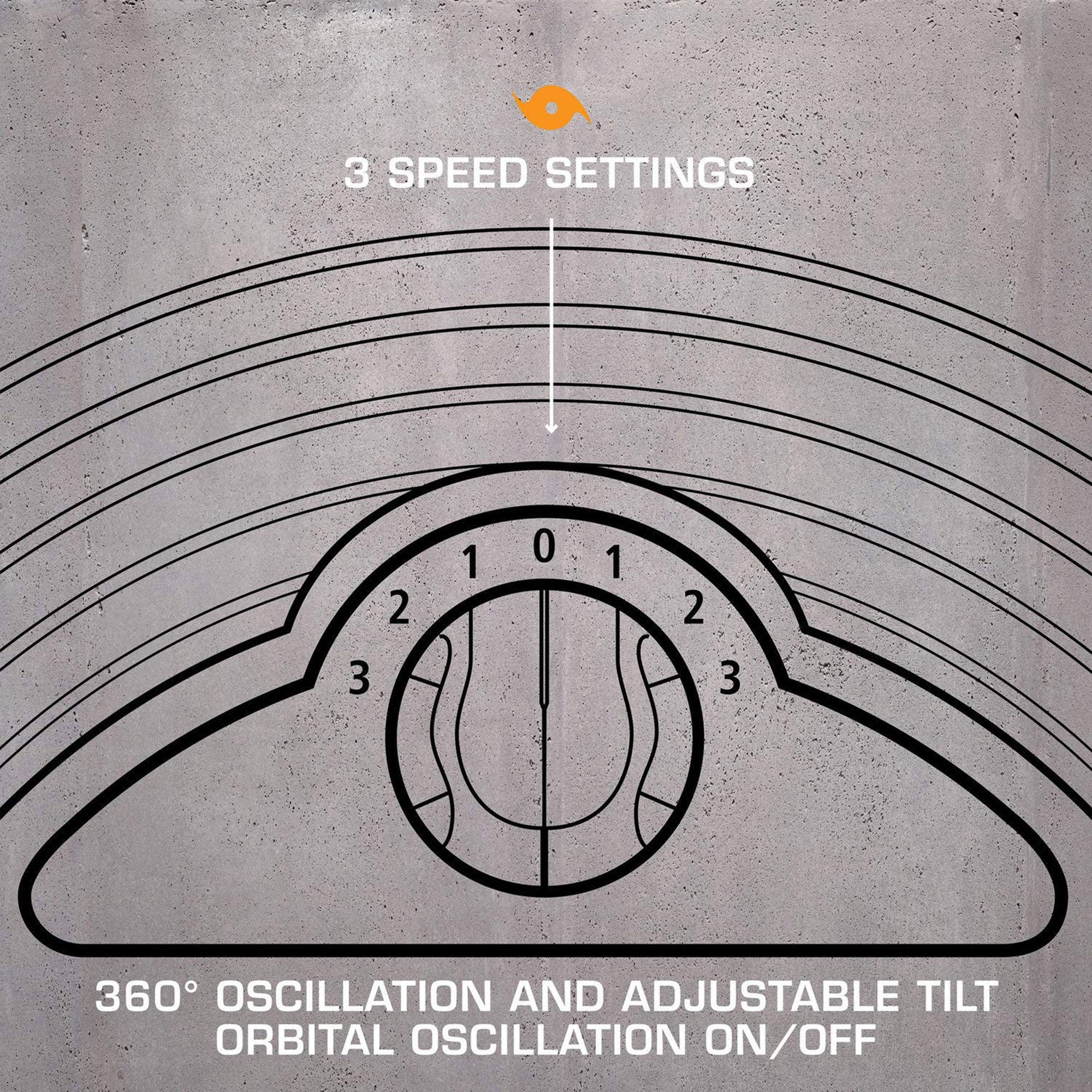 - Showcases orbital gear technology with a rotor that oscillates a full 360 degrees, ensuring maximum coverage in your chosen space and creating a consistent breeze throughout