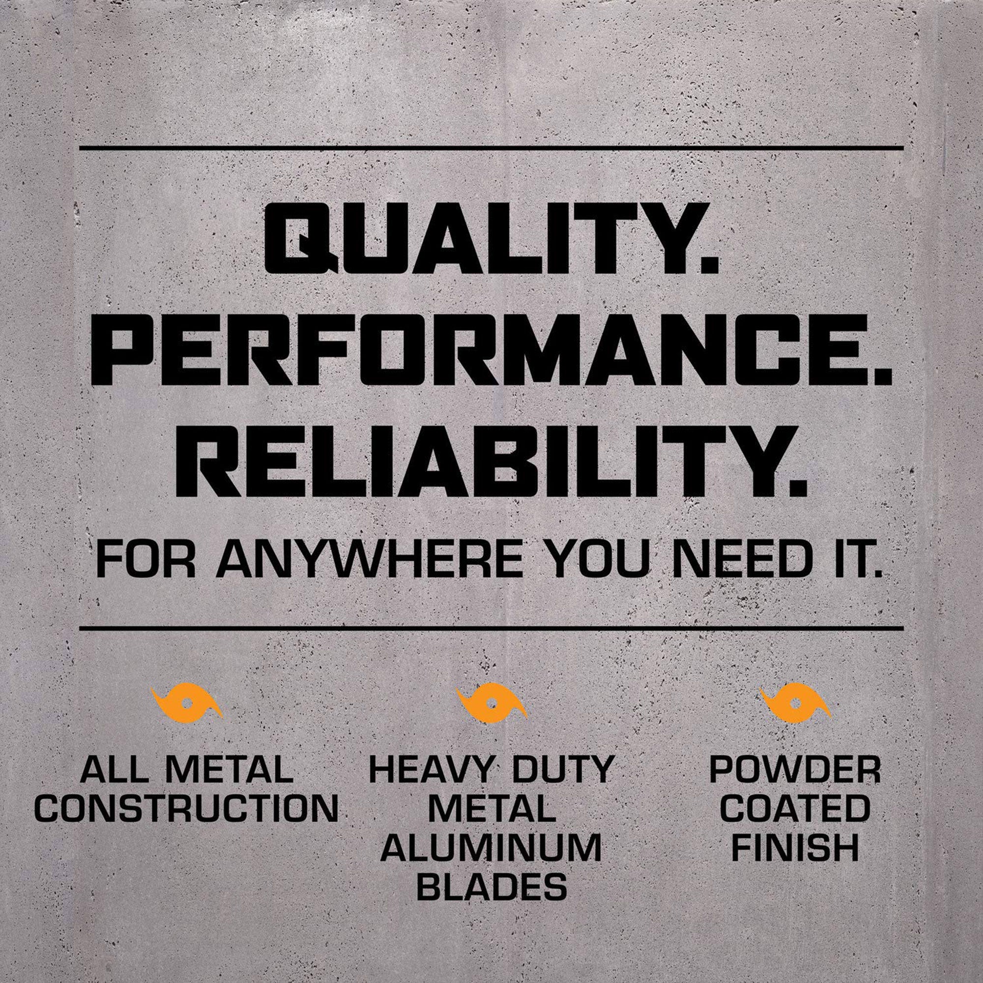 - Crafted and features an all-metal construction, sleek black powder-coated finish, and efficient aluminum blades for top-notch durability