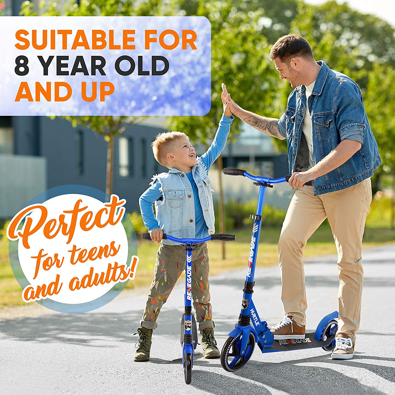 When you need to get from point A to point B, but don't want to break the bank on gas, the Hurtle Renegade Kick Scooter will get you where you need to go. Designed for kids, teens, and adults, this commuter scooter is recommended for ages 8 years old and up.
