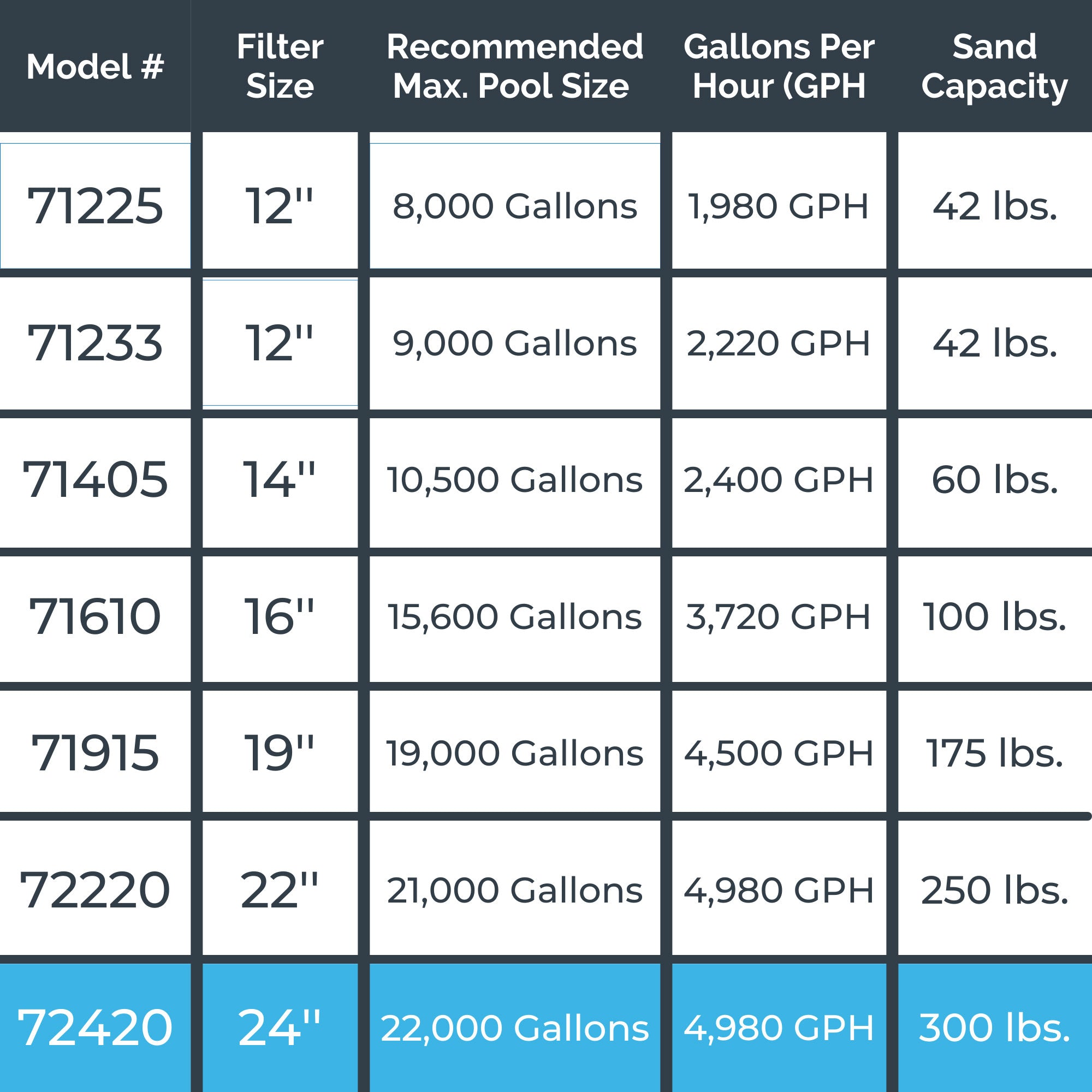 - Double-reinforced 24-inch molded tank can hold up to 300 pounds of sand, perfect for pools up to 21,000 gallons; Sand not included