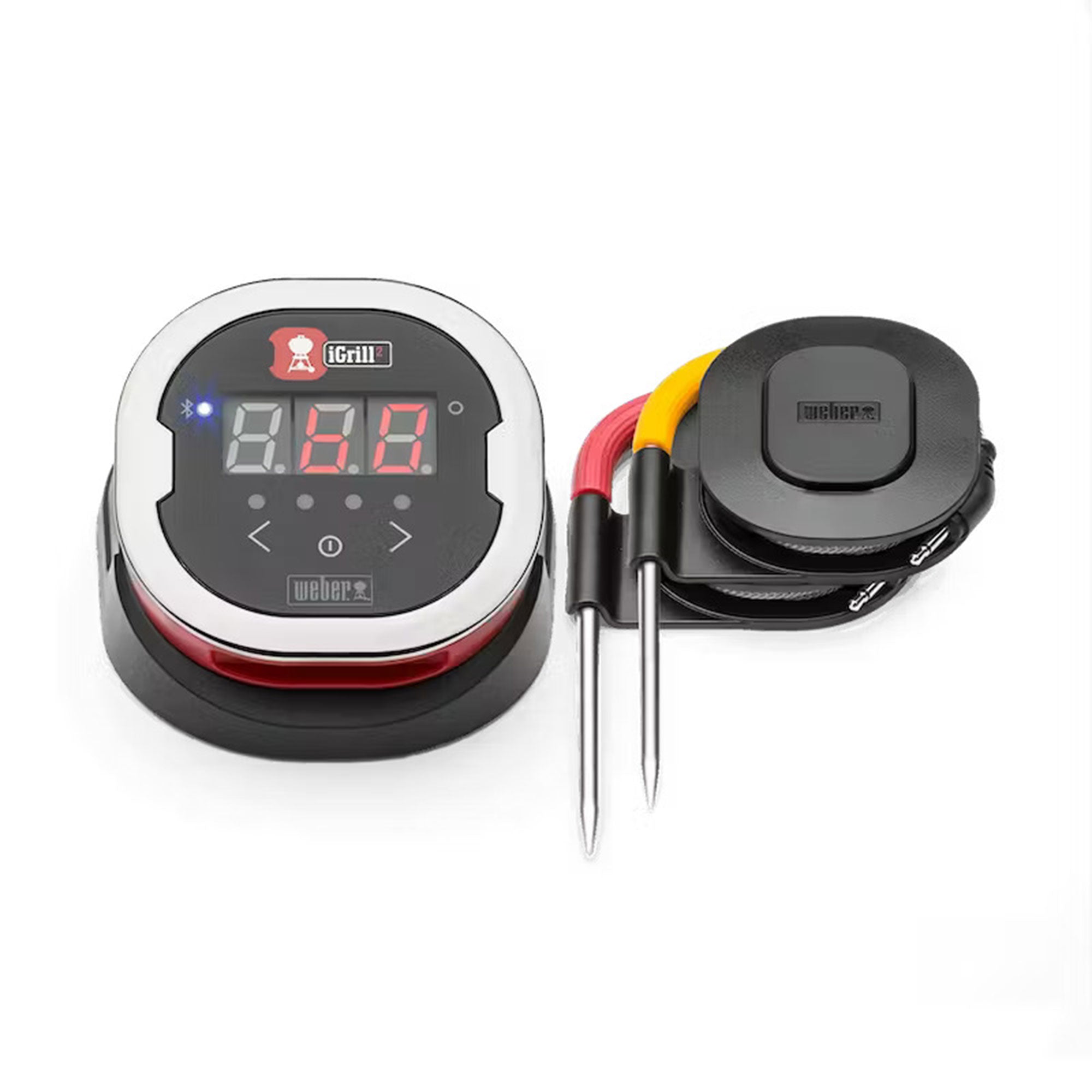 Harness the power of technology in the kitchen with this app-connected thermometer that allows you to monitor the doneness of up to 4 cuts of meat. With 200 hours of battery life, this magnetic, grill-mountable thermometer includes 2 color-coded, professional-grade meat probes and has a maximum 4-probe capacity. It seamlessly pairs with your mobile device via the Weber iGrill app to immediately alert you once your foods have reached their ideal doneness. This device ensures that each piece is cooked to perfection, allowing you to cater to everyone's tastes with confidence. Take your barbecue game to the next level by selecting your preferred level of doneness, and receive real-time alerts on your smartphone when your food reaches the desired temperature. No more hovering over the grill, no more anxiety. Just perfectly cooked dishes every time. Meanwhile, the illuminated display and LED temperature readout provide crystal-clear, at-a-glance information, even in low-light conditions, making outdoor grilling sessions a breeze.