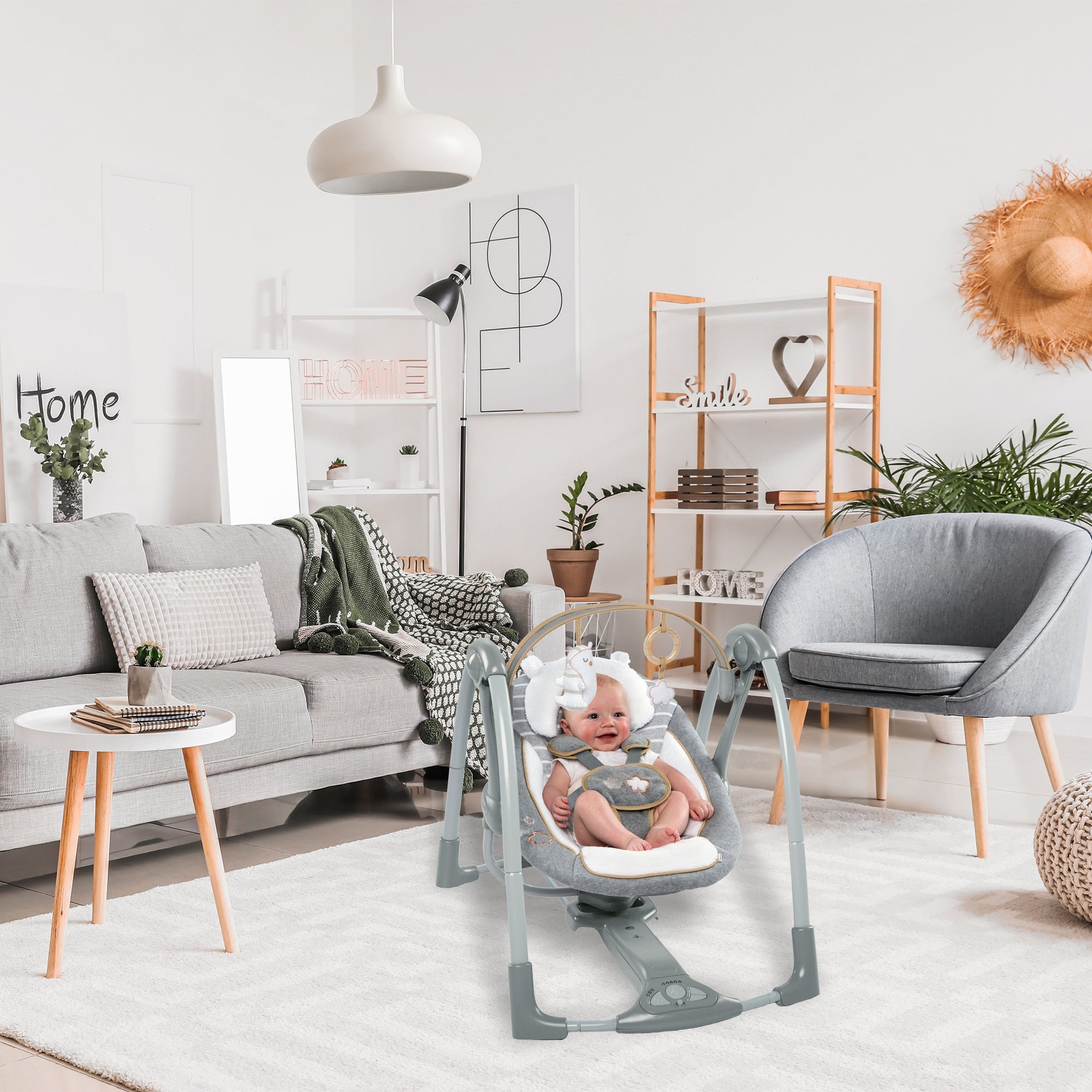 - Keep your baby calm and comfortable in this multi-functional swing chair