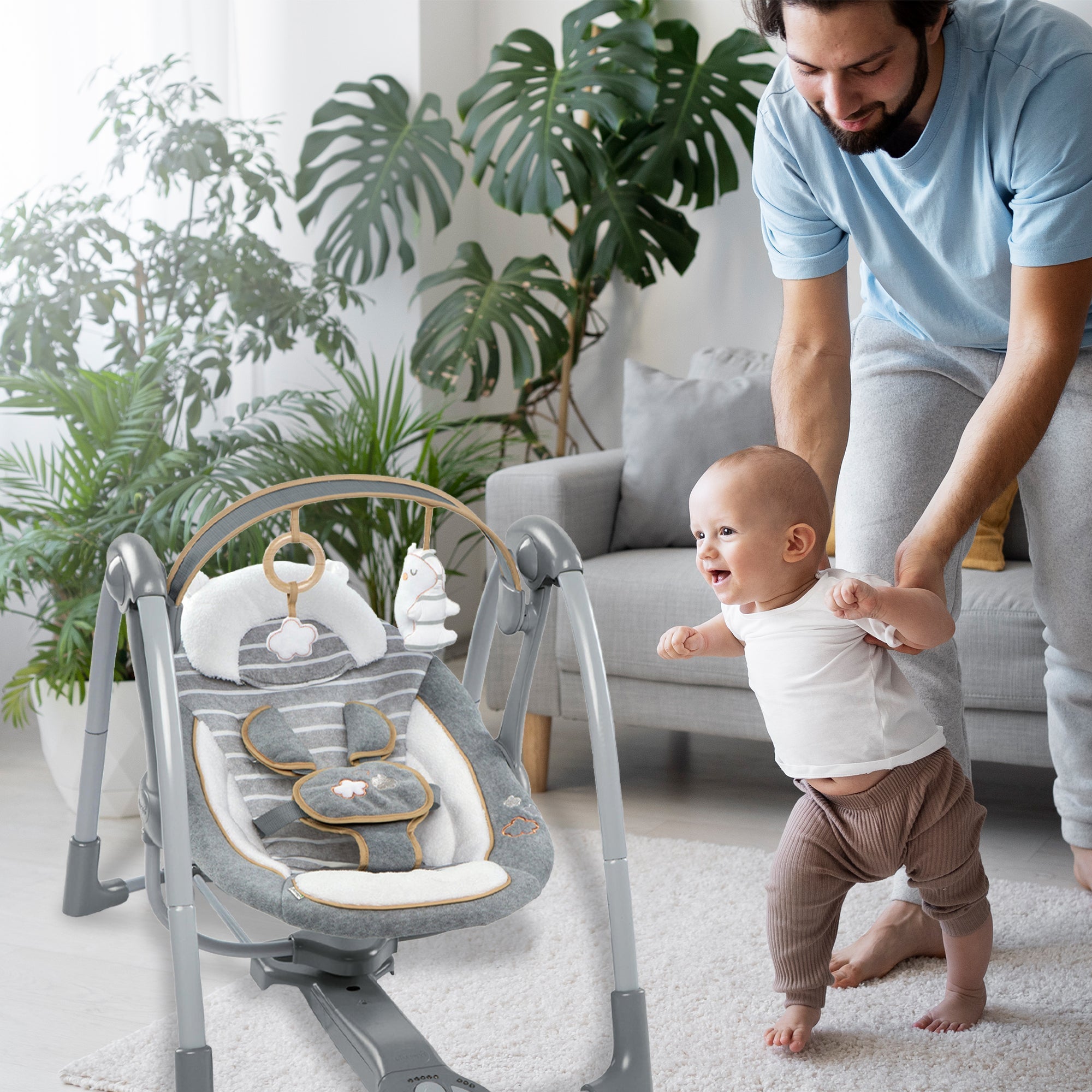 Give you and your little one peace of mind with the Ingenuity InLighten Baby Electric Cradling Swing Rocker Chair.