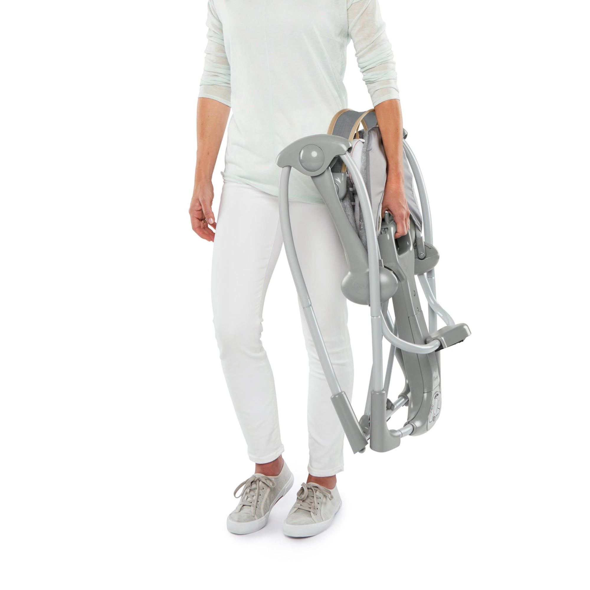 Keep your little one happy and comfortable in the Ingenuity Boutique Collection Baby Swing N Go Portable Rocker Chair while you take a break from cradling them in your arms.