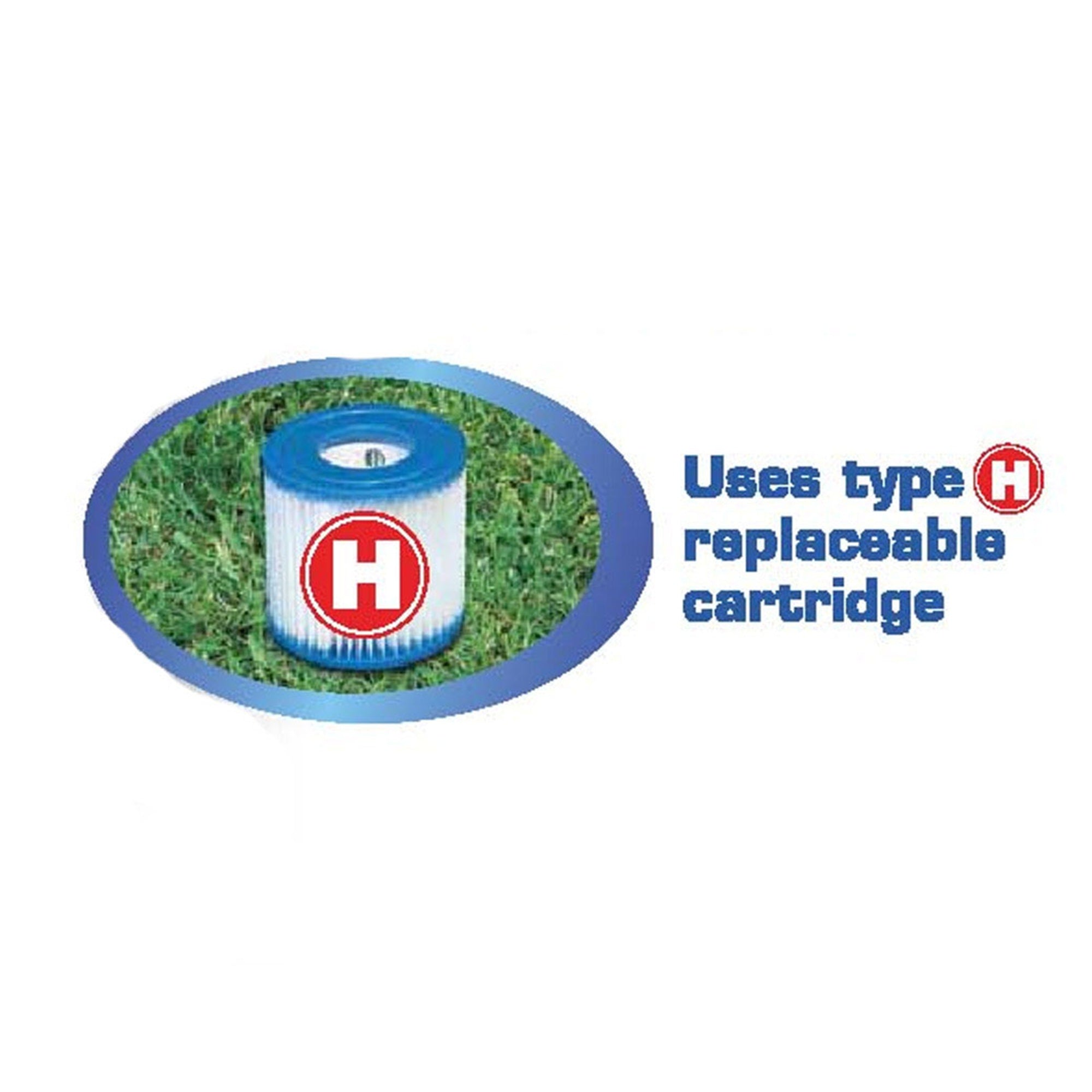 Keep your pool water Krystal Clear and refreshing this summer with the Intex 330 GPH Filter Cartridge Pump! Boasting a pump flow rate of 330 gallons per hour and a system flow rate of 300 gallons per hour, this pump will circulate and filter the water in your above ground pool to keep everything clean, refreshing, and fun. In addition, the maintenance for this pump is a breeze: just the occasional cartridge rinse or swap to keep this pump running strong. This filter uses Type H filter cartridges (Item #29007E) which should be changed every couple of weeks. This pump is a must have for any above ground pool up to 2,400 gall.