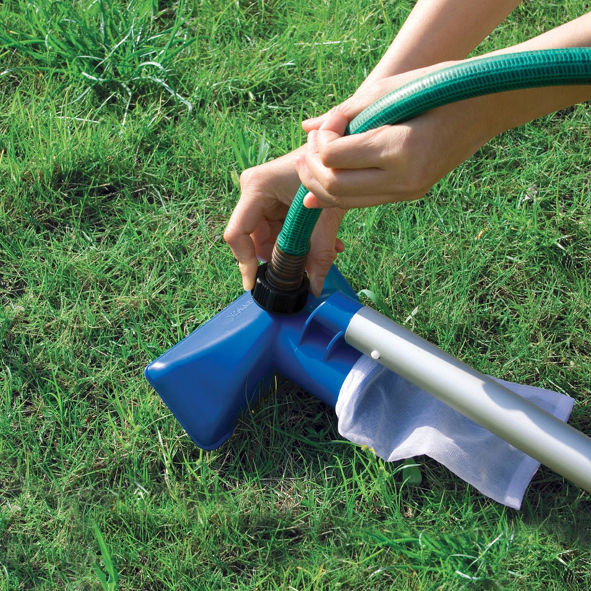Attach the vacuum to the 94 inch telescoping pole. Simply connect your garden hose and suck debris into the reusable debris bag. Then attach the surface skimmer to the pole and collect leaves and other floating particles.
