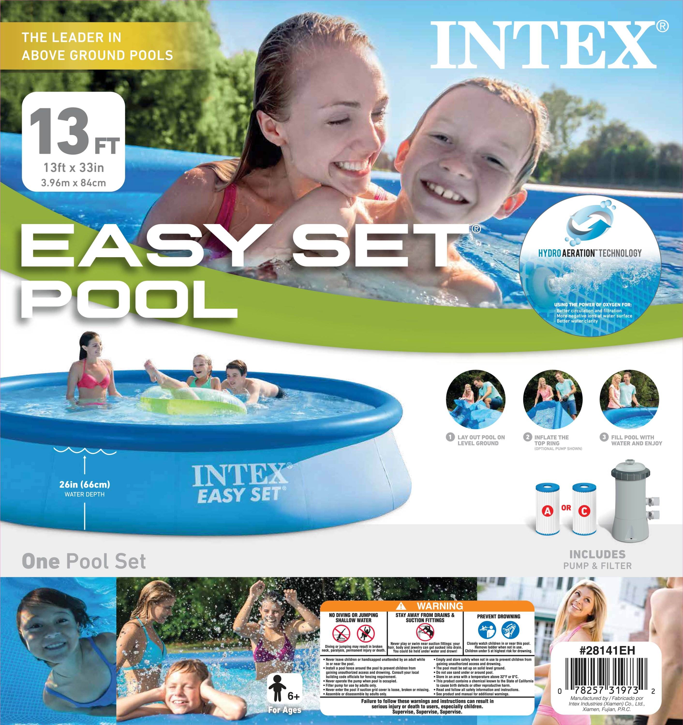 This Intex 13'x 32" Easy Set Pool will give your friends and family infinite hours of refreshing, fun activity and enjoyment. Included with your Easy Set pool is a 530 GPH Krystal Clear cartridge filter pump to help keep your pool clean all summer long. Easy Set pools are much simpler and easier to set up and disassemble than any rigid steel walled pool. This pool will make your backyard the place to be all summer as your family can relax and play.