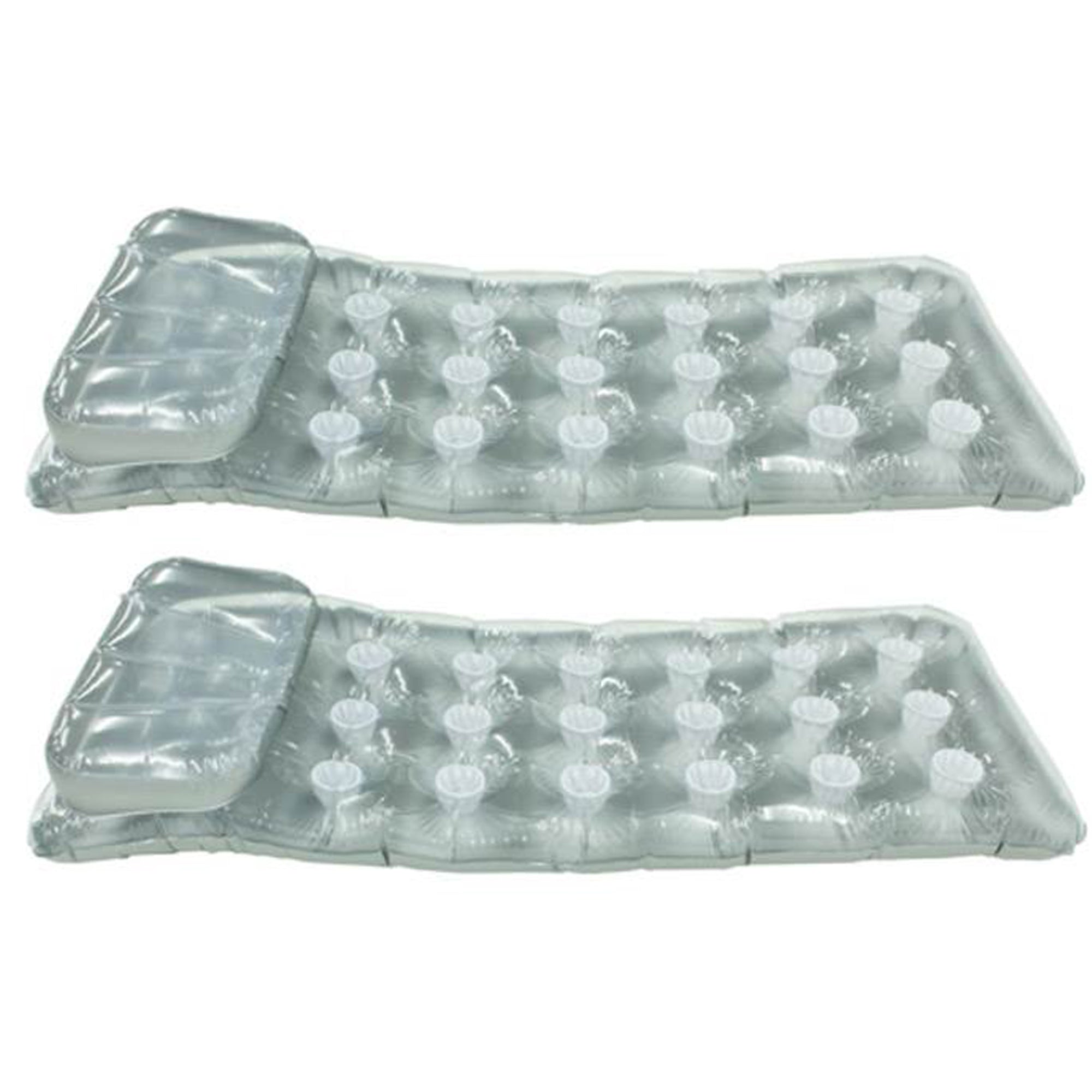 Soak up the rays while relaxing on the Intex Suntanner Lounge. This 2 pack of inflatable pool floats feature comfortable built in pillows for extra comfort. The 18 pockets even double as cup holders!