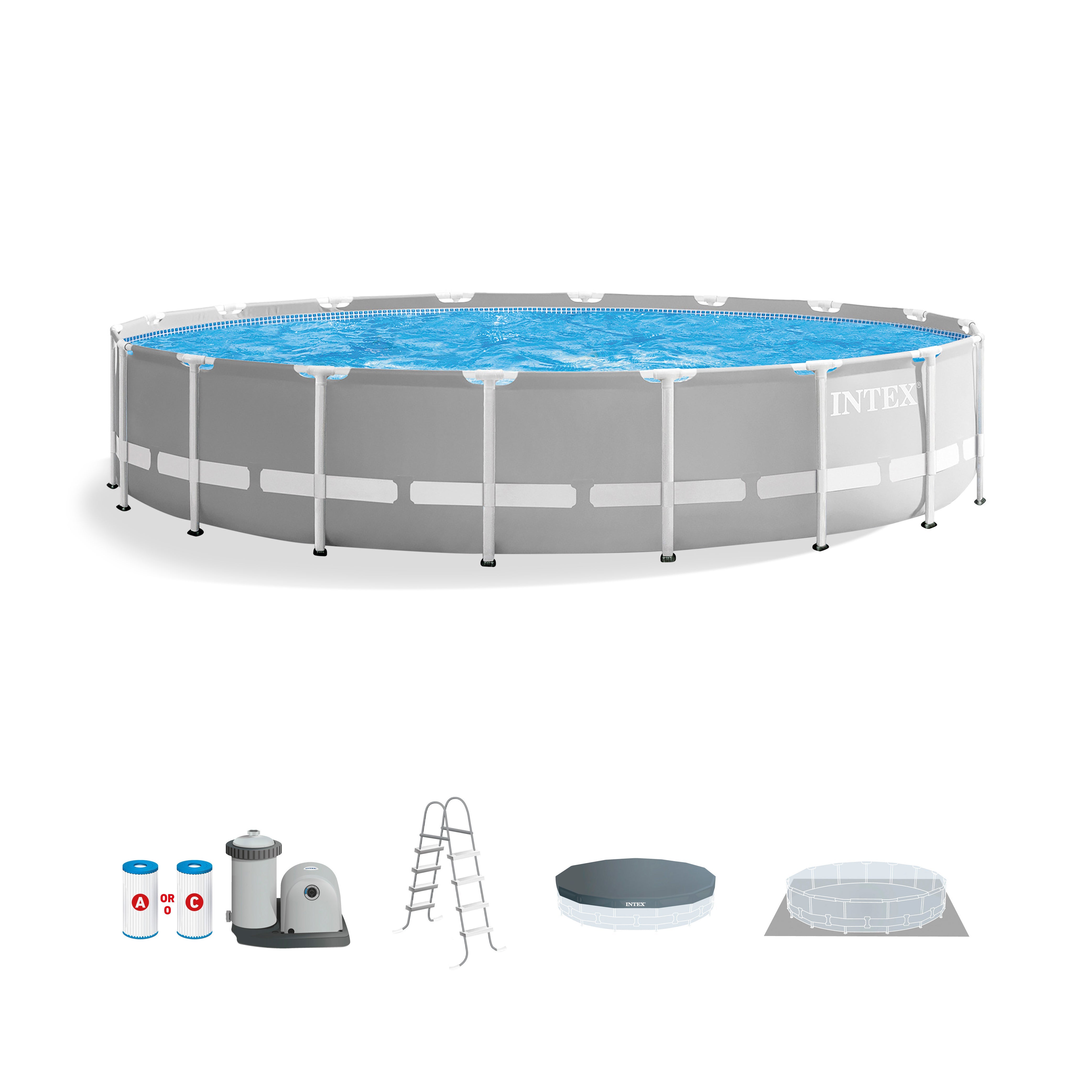 Intex 18ft x 48in Prism Round Frame Above Ground Swimming Pool Set with Pump