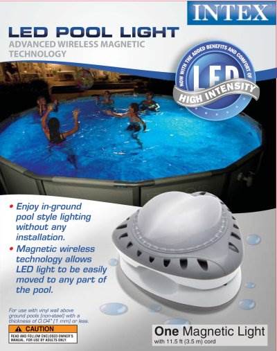 • The Intex Magnetic LED Pool Light is the solution you have been looking for to light your above ground pool