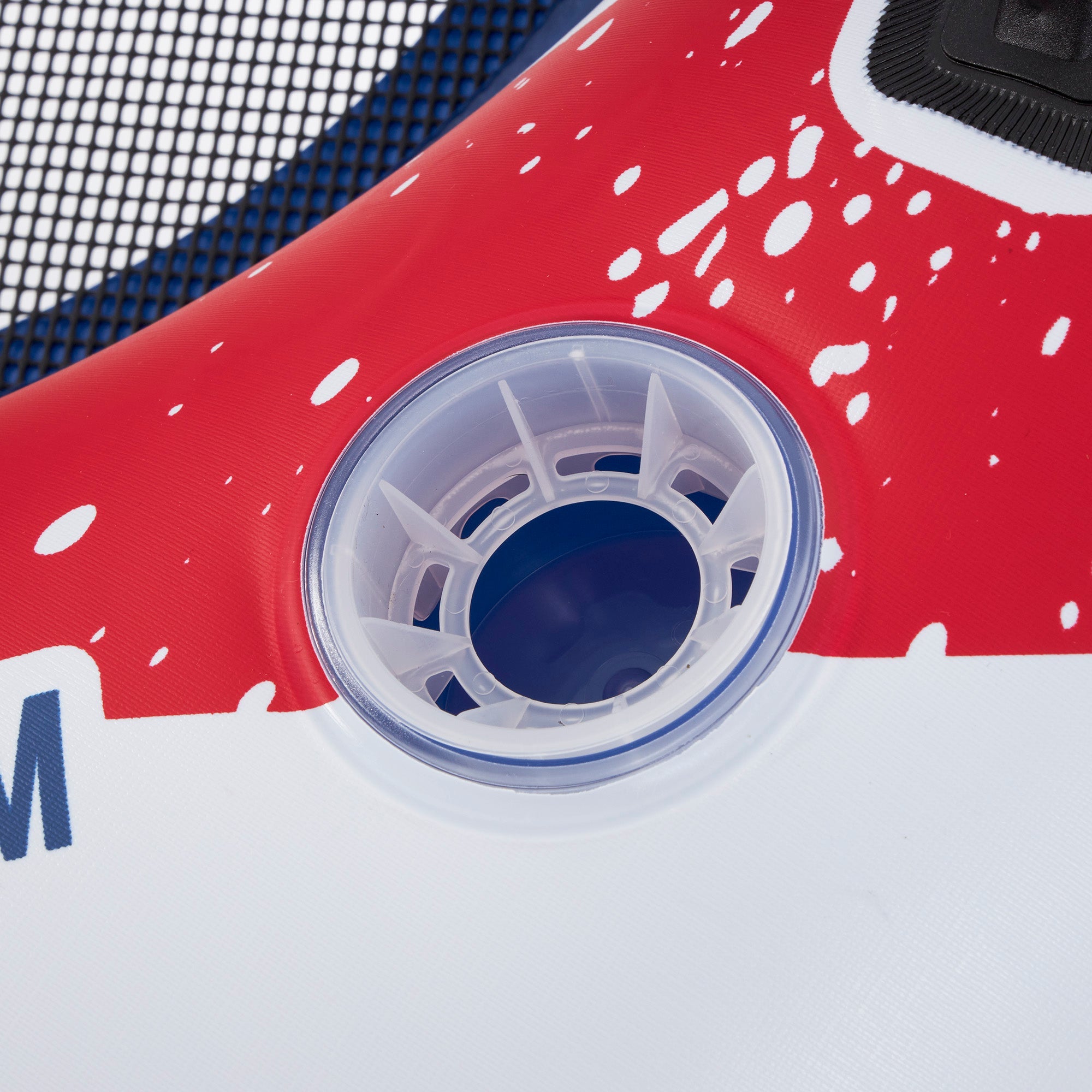 This floating tube is constructed from durable 18-gauge vinyl that resists normal wear from riding in any environment. The 1-person design is made with a built-in backrest for easy cruising and a mesh bottom that keeps you cool while flowing down the river or sitting in the lake. This inflatable lounger has two air chambers for added stability and support to keep you safe in any stretch of water. It also features a built-in cup holder to keep your refreshment nearby as you relax in the water.