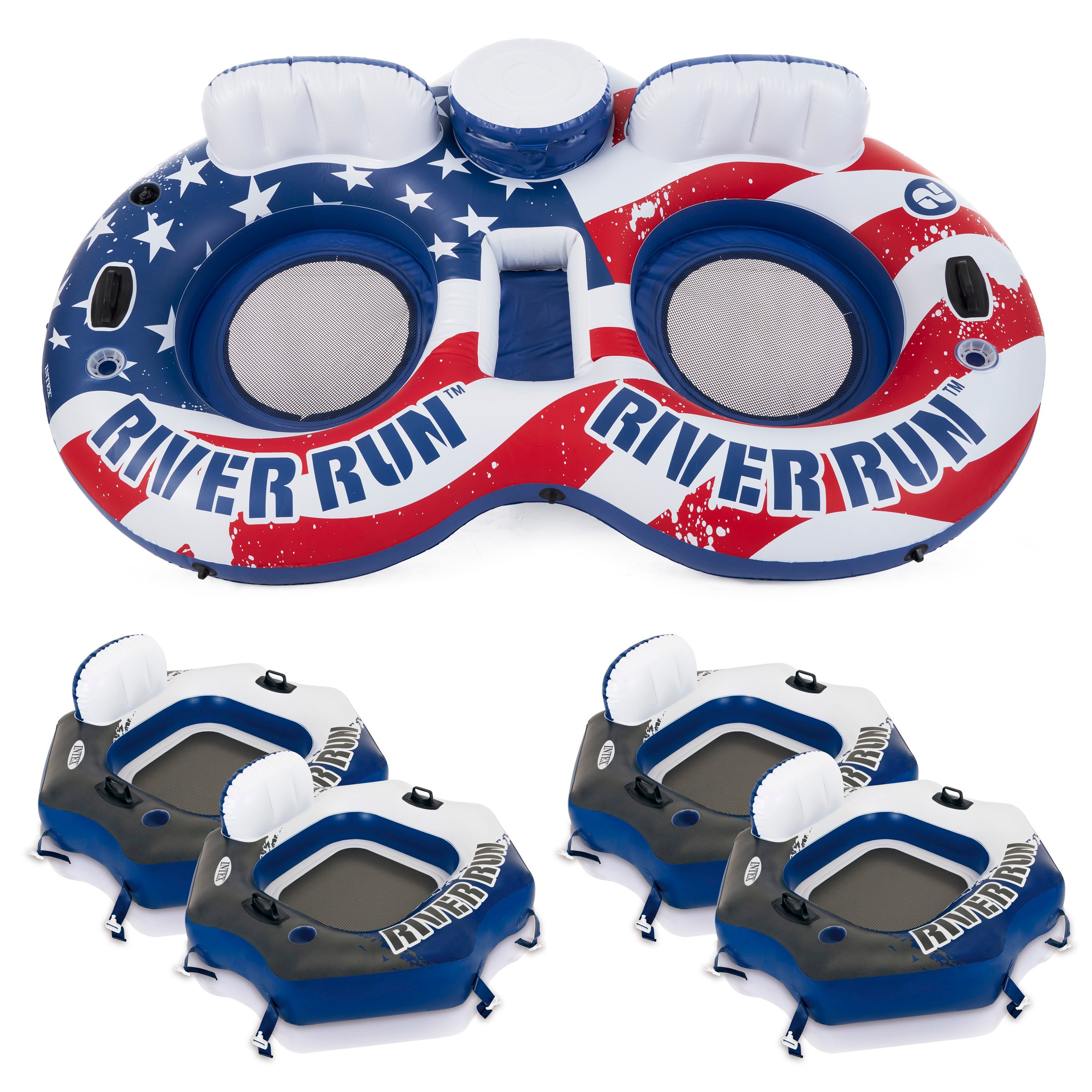 Intex American Flag 2 Person Float w/ River Run 1 Person Tube, Blue (4 Pack)
