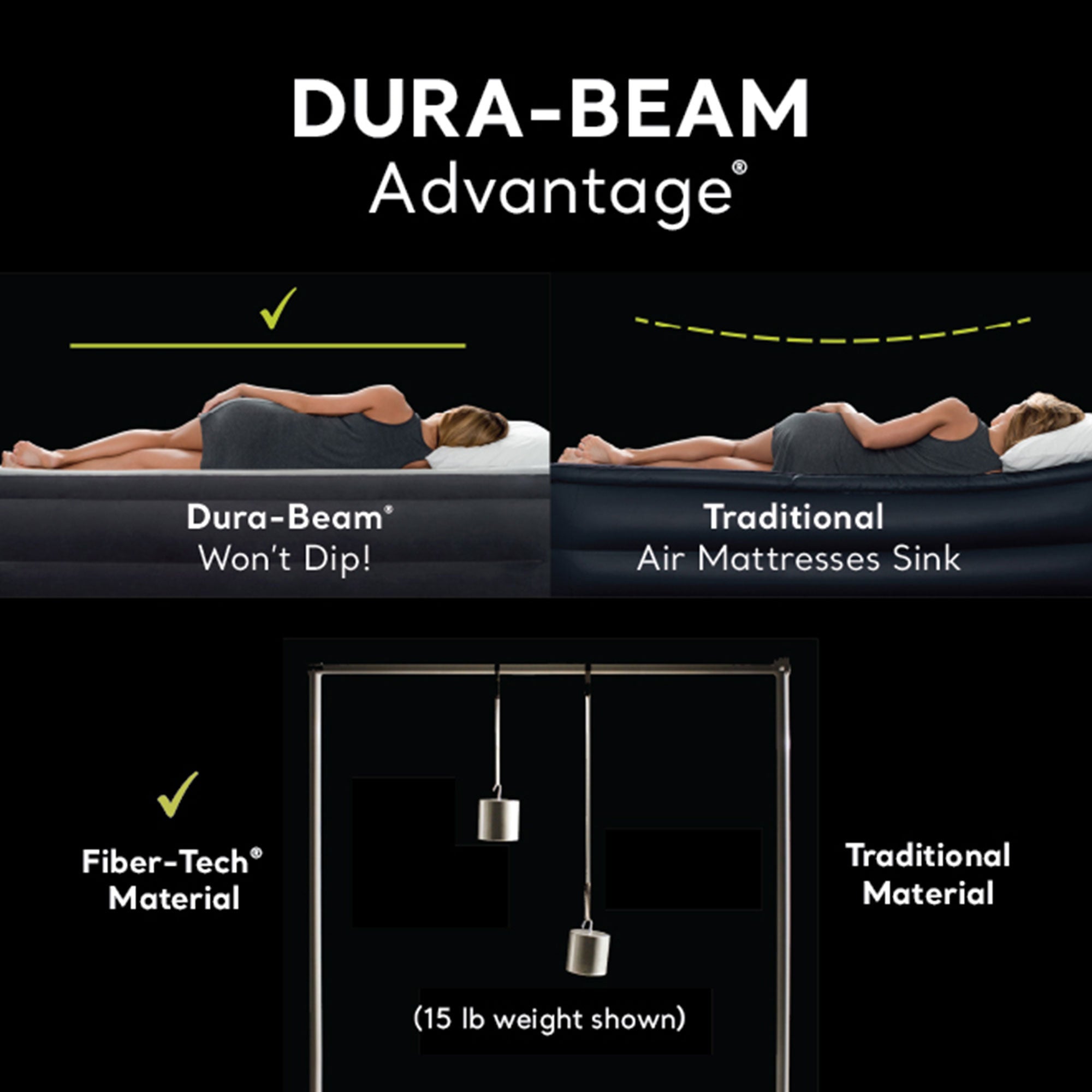 Perfect to take camping or to use as an extra bed for house guests, these inflatable air mattresses feature Fiber-Tech interior construction for firmness and support. The velvety mattress top allows for comfortability and softness, making anywhere the perfect spot for sleep and relaxation.