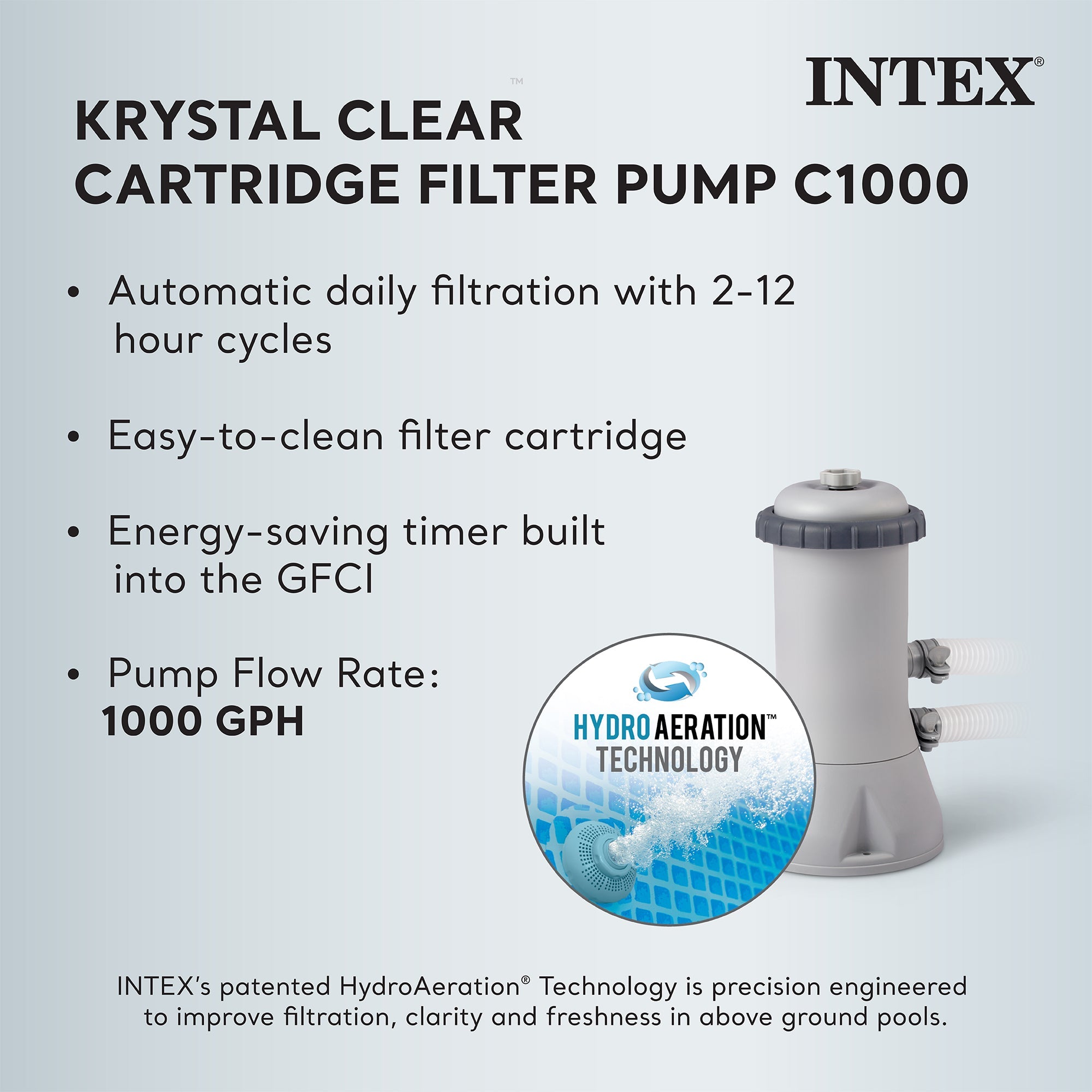 - Krystal Clear 110 to 120-volt filter pump with a pump flow rate of 1,000 gallons per hour ensures crystal-clear water