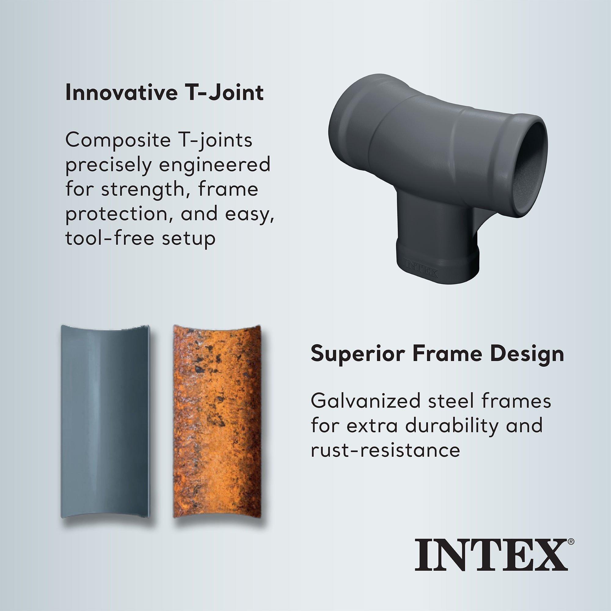 Whether you're hosting a summer get-together or need a day of relaxing, have everything you need with the Greywood Prism Frame Pool Set from Intex.