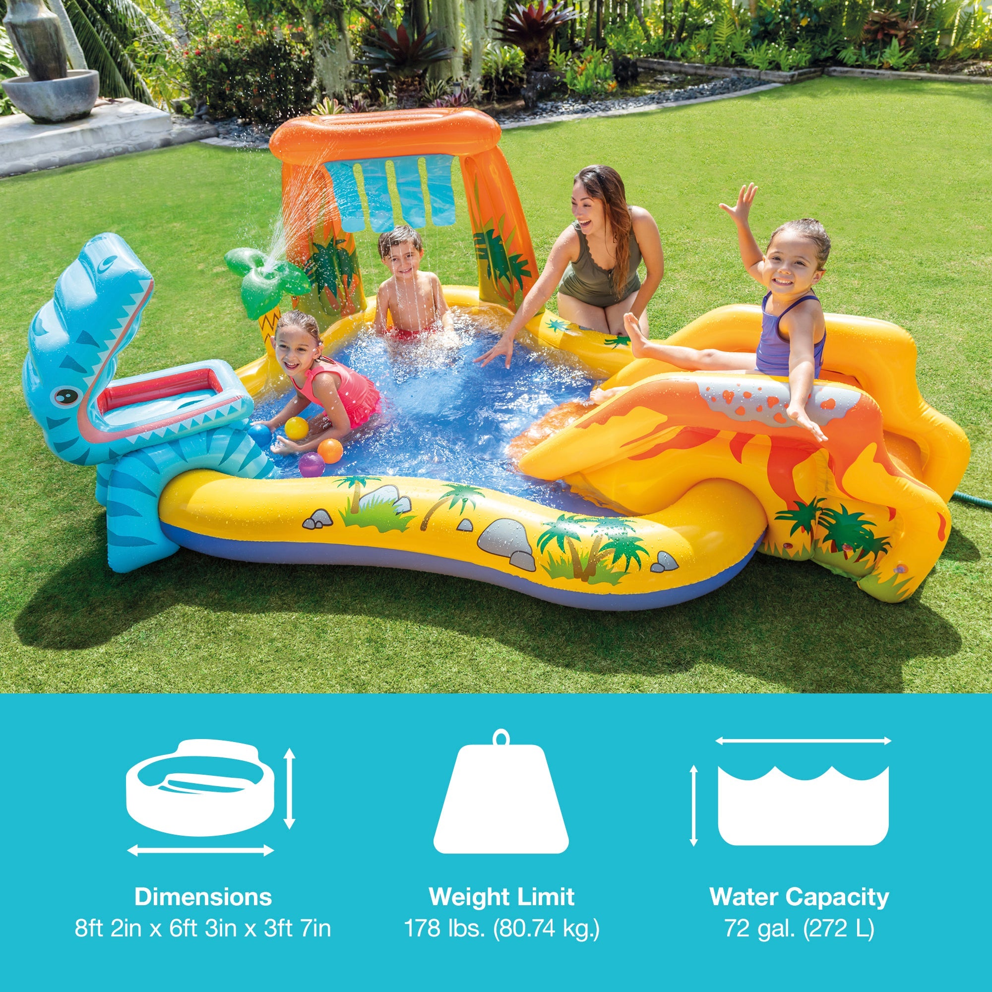Transform your backyard into an island adventure! Enjoy your hot summer days with the Intex Dinosaur Play Center Water Park Pool.