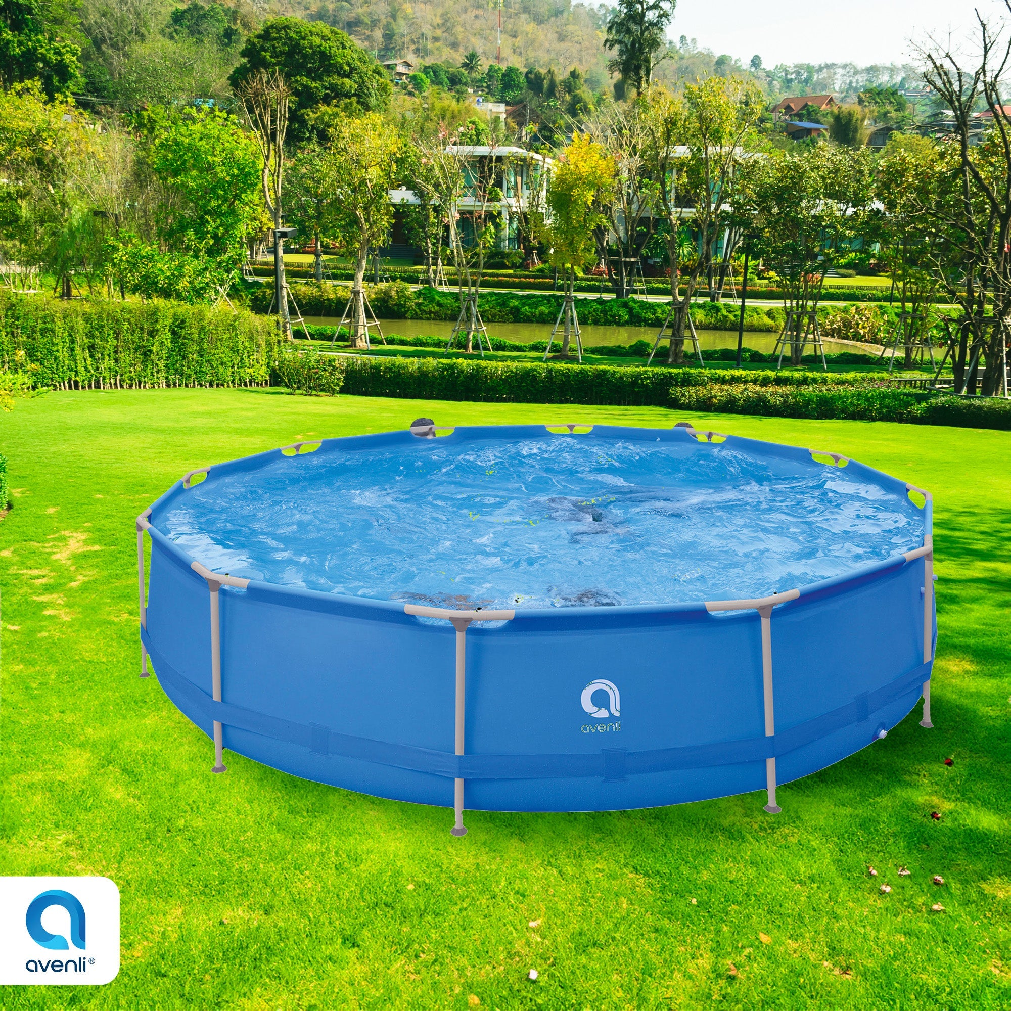 Enjoy the summertime swimming pool season more than ever before thanks to the JLeisure Avenli 15 Foot x 36 Inch Steel Frame LamTech Above Ground Swimming Pool. This above-ground pool is ideal for families to enjoy splashing and swimming around this summer.
