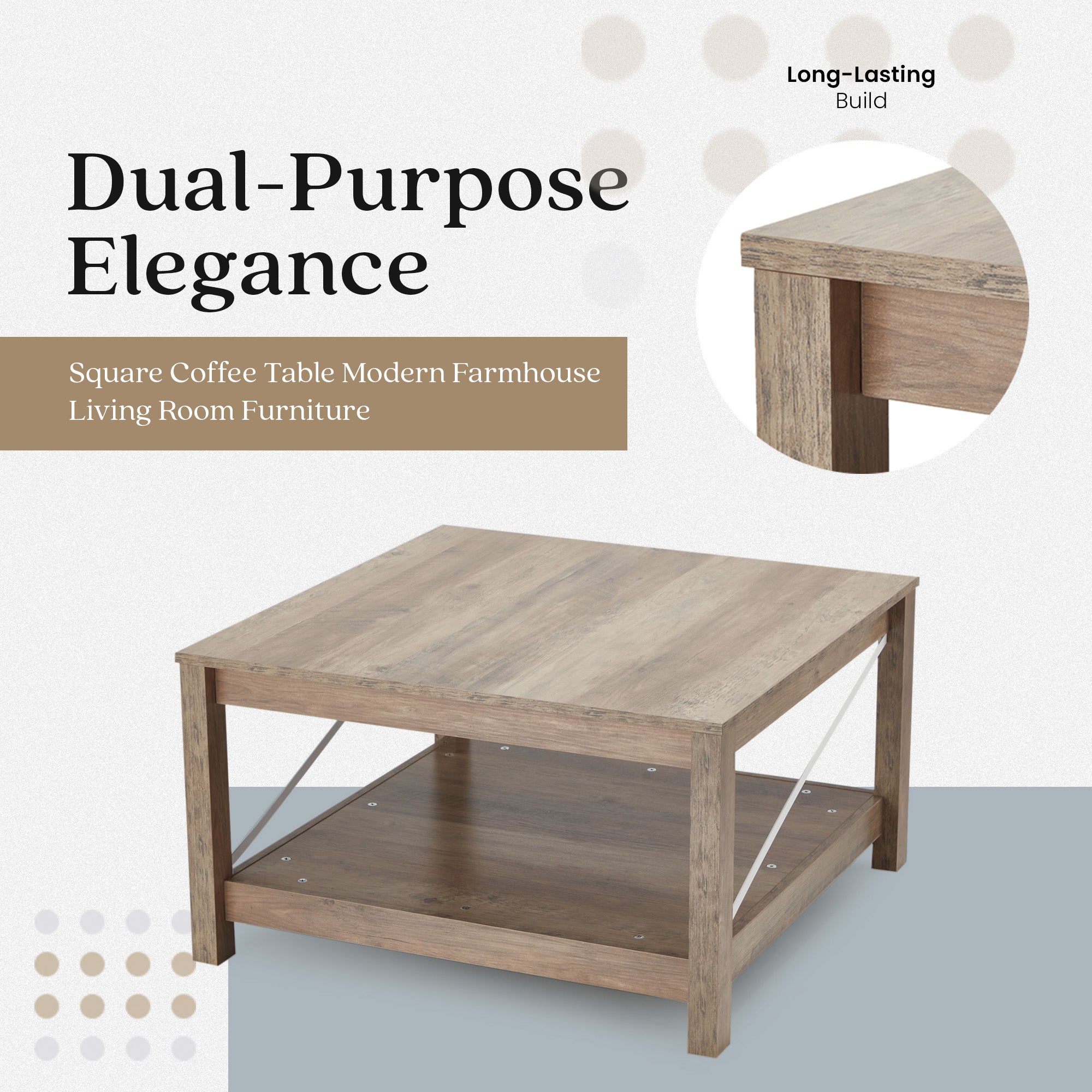 JOMEED 31.5" Square Coffee Table Modern Farmhouse Living Room Furniture, Beige