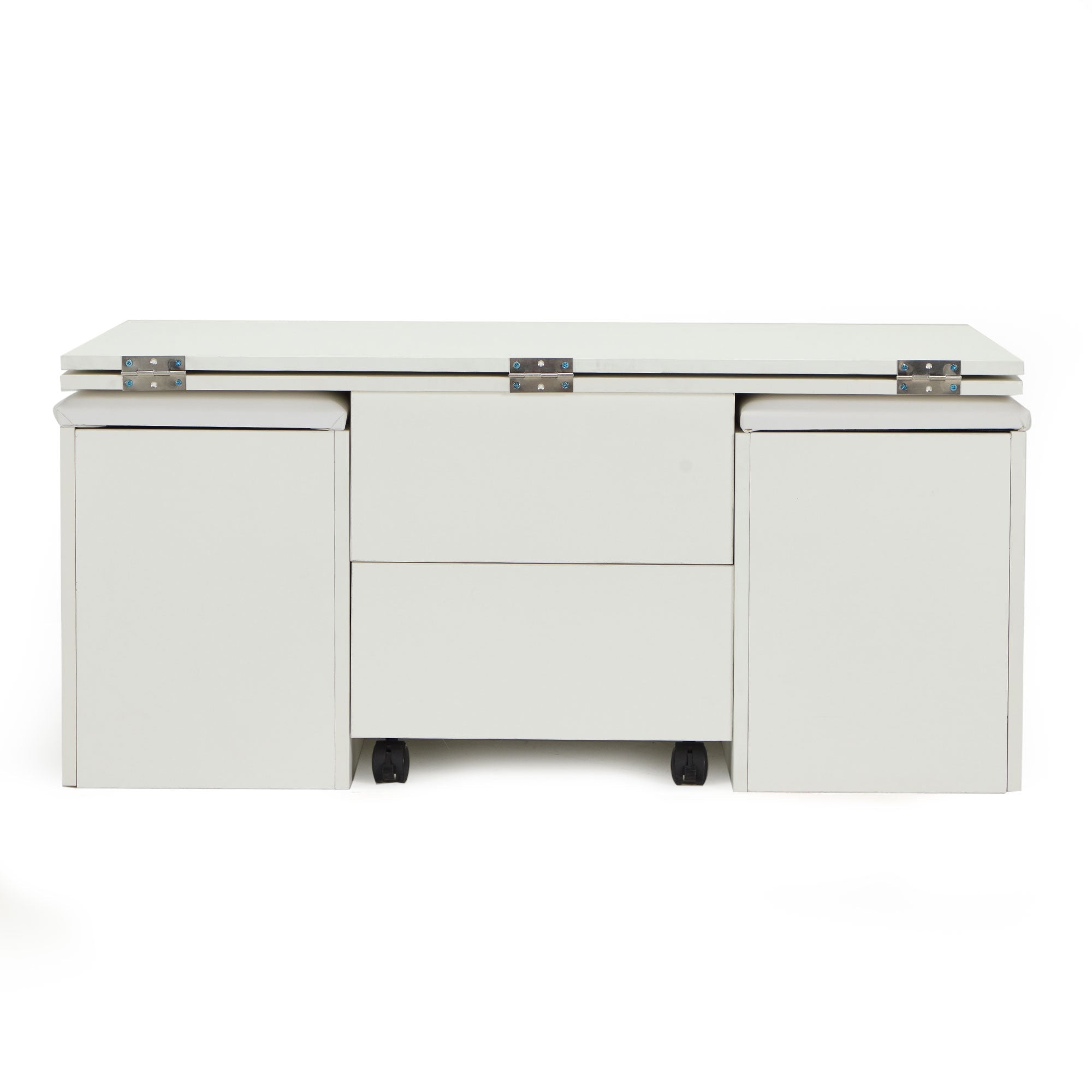 JOMEED Cushioned Seat Converts to Height Adjustable Table with Drawers, White