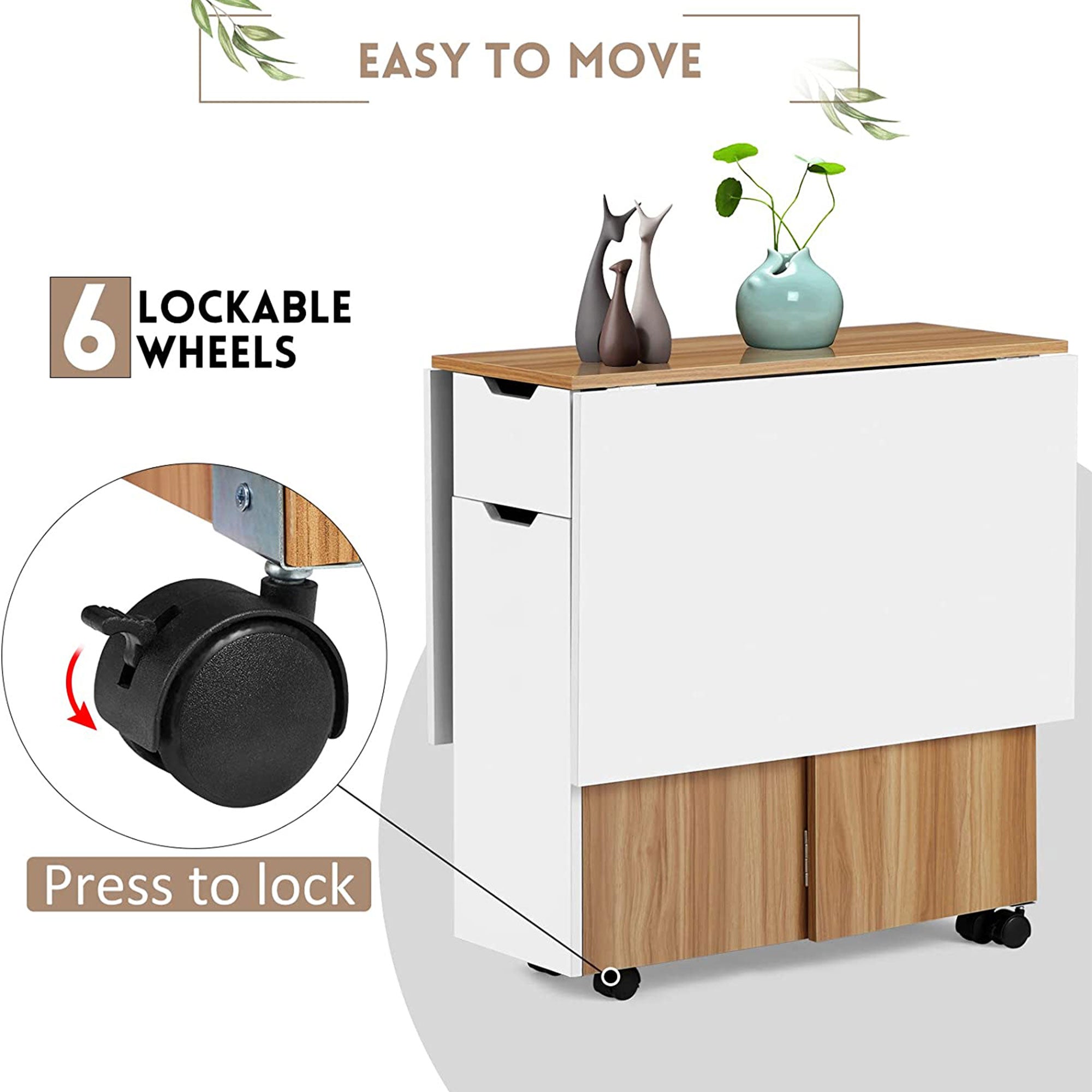 This foldable table is designed to bring storage options and make full use of limited space, suitable for apartments, kitchens, dorms, or other small areas. Place this piece in your dining room, or use the convertible table in the living room as a serving station during holidays or other large gatherings. Made of durable particleboard, it can be adjusted according to your needs to be fully open, half-open, or fully folded down for storage purposes.
