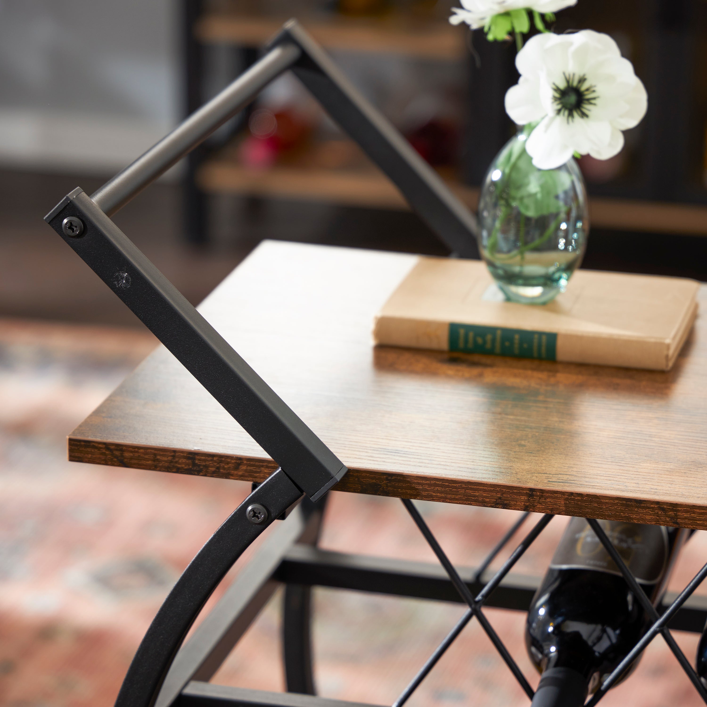 Jomeed Wood and Metal Portable Kitchen Bar or Coffee Cart with Wine Rack, Brown