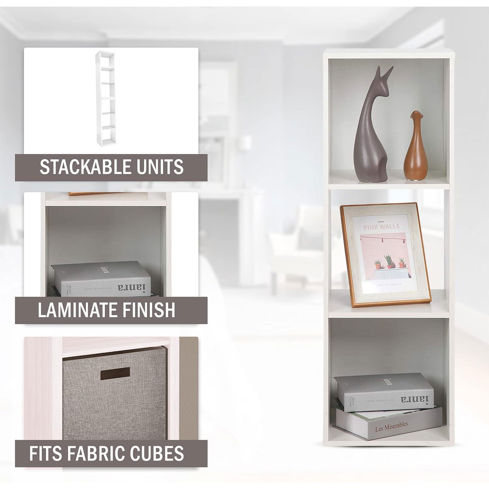 - Spacious cubes allow you to showcase your favorite books, display cherished mementos, or even organize essentials in style