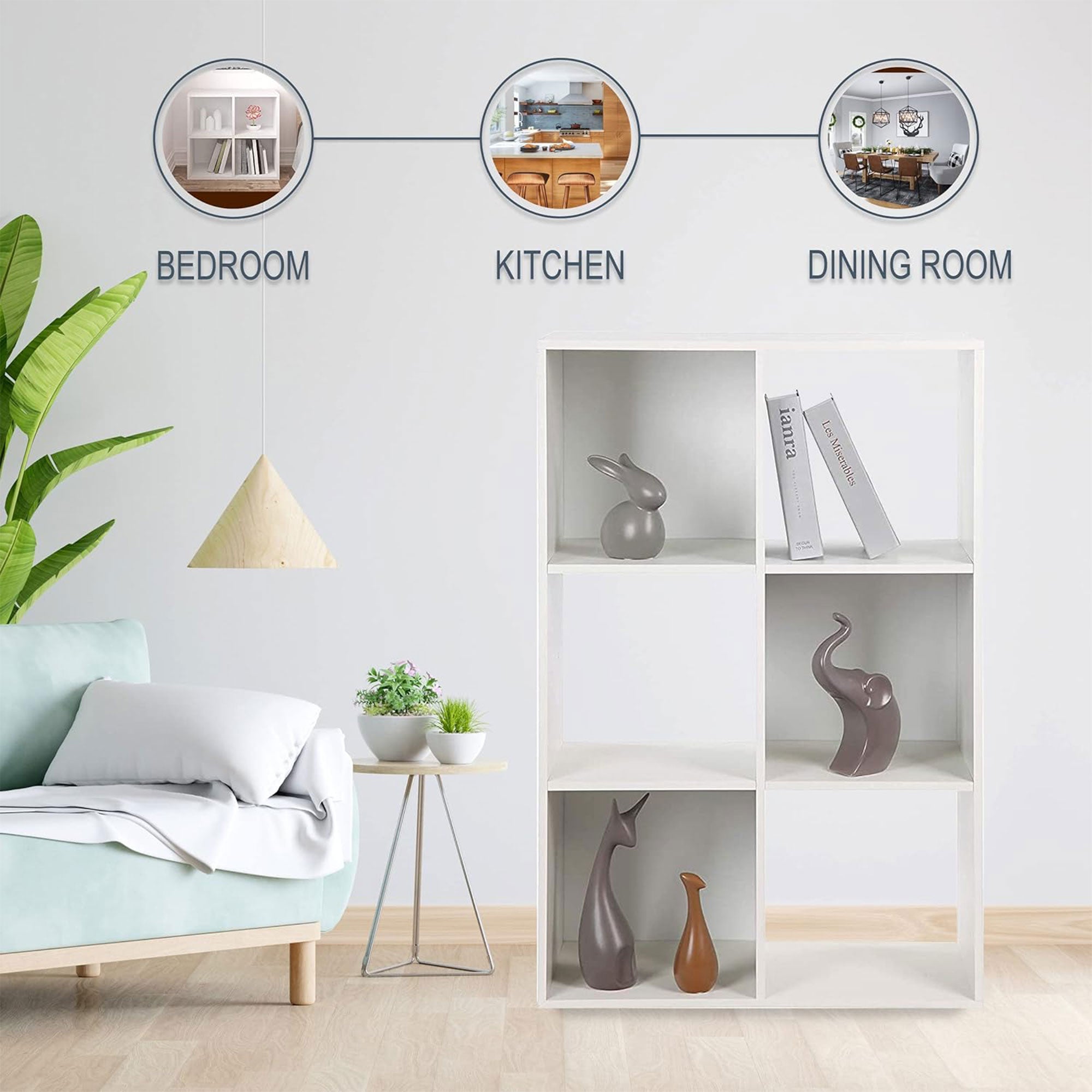 Make the most of your home's storage space and quickly change any area's appearance while maintaining organization with the Juggernaut Storage 6-Cube Wooden Storage Shelf Bookshelf Home Organizer.