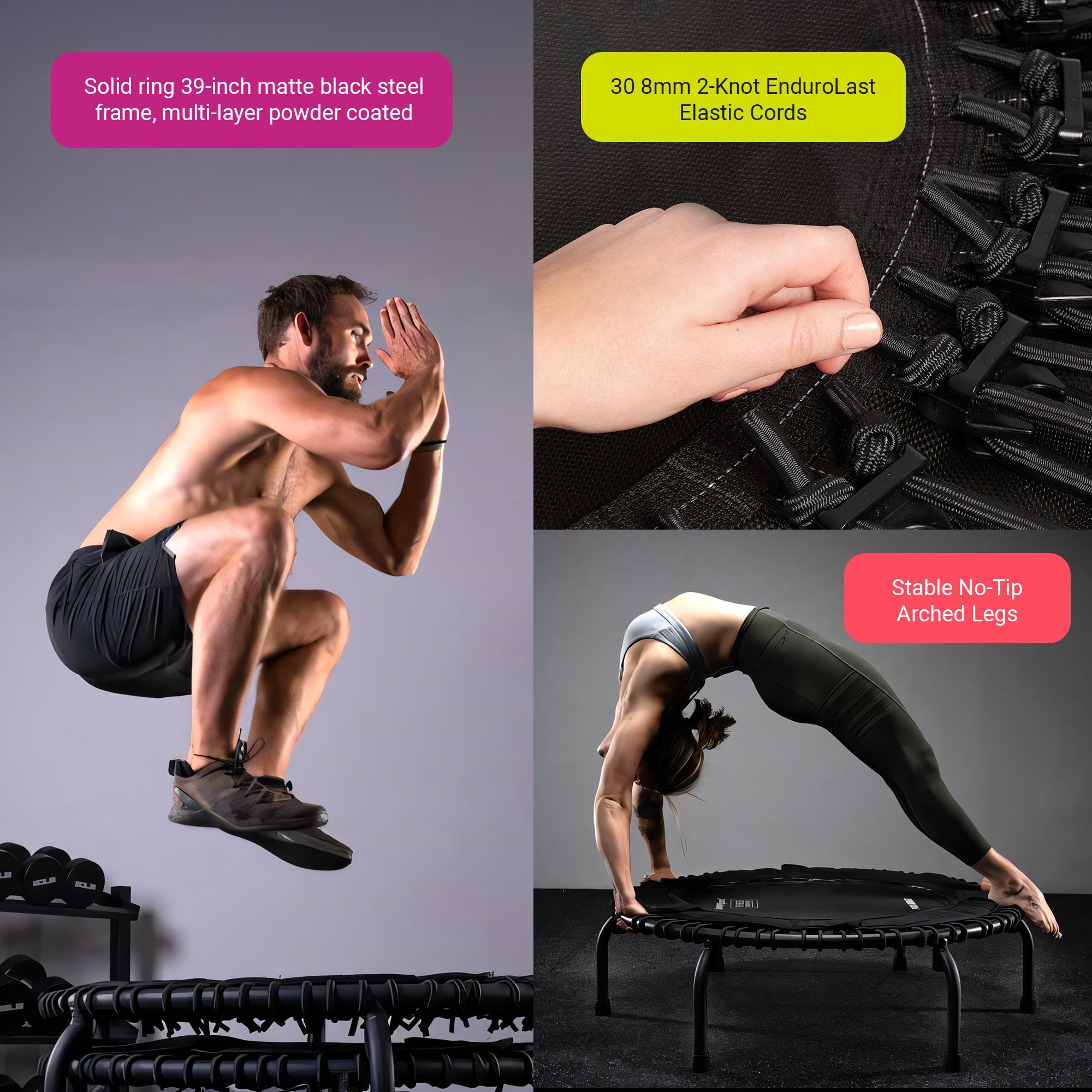 - Smooth, quiet EnduroLast elastic cords provide a low-impact, cushioned bounce for all fitness levels