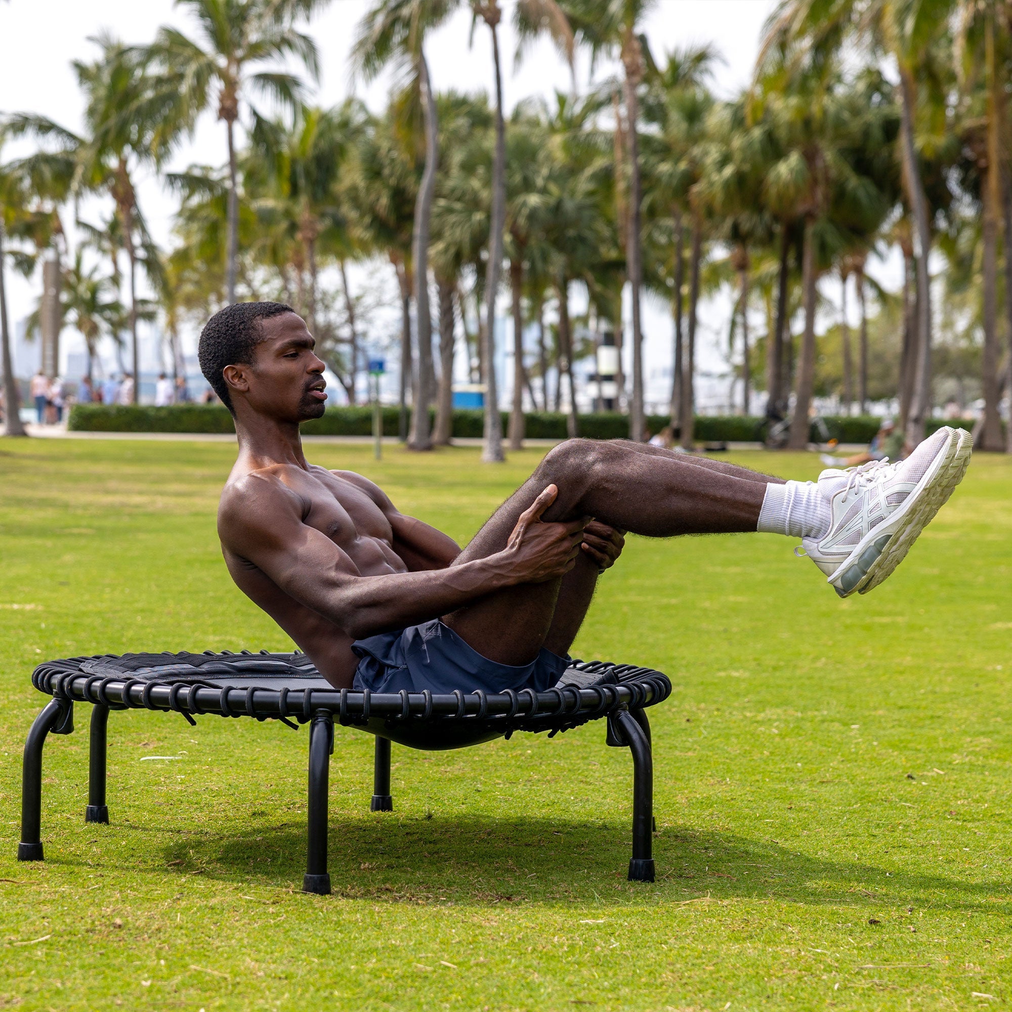 The trampoline has a durable lightweight design to facilitate a wide range of modalities and for easy storage. Whether you workout in a studio, apartment, office, or tiny home, the easily mobile JumpSport Fitness 350 PRO trampoline offers the variety you need to workout whenever, wherever.