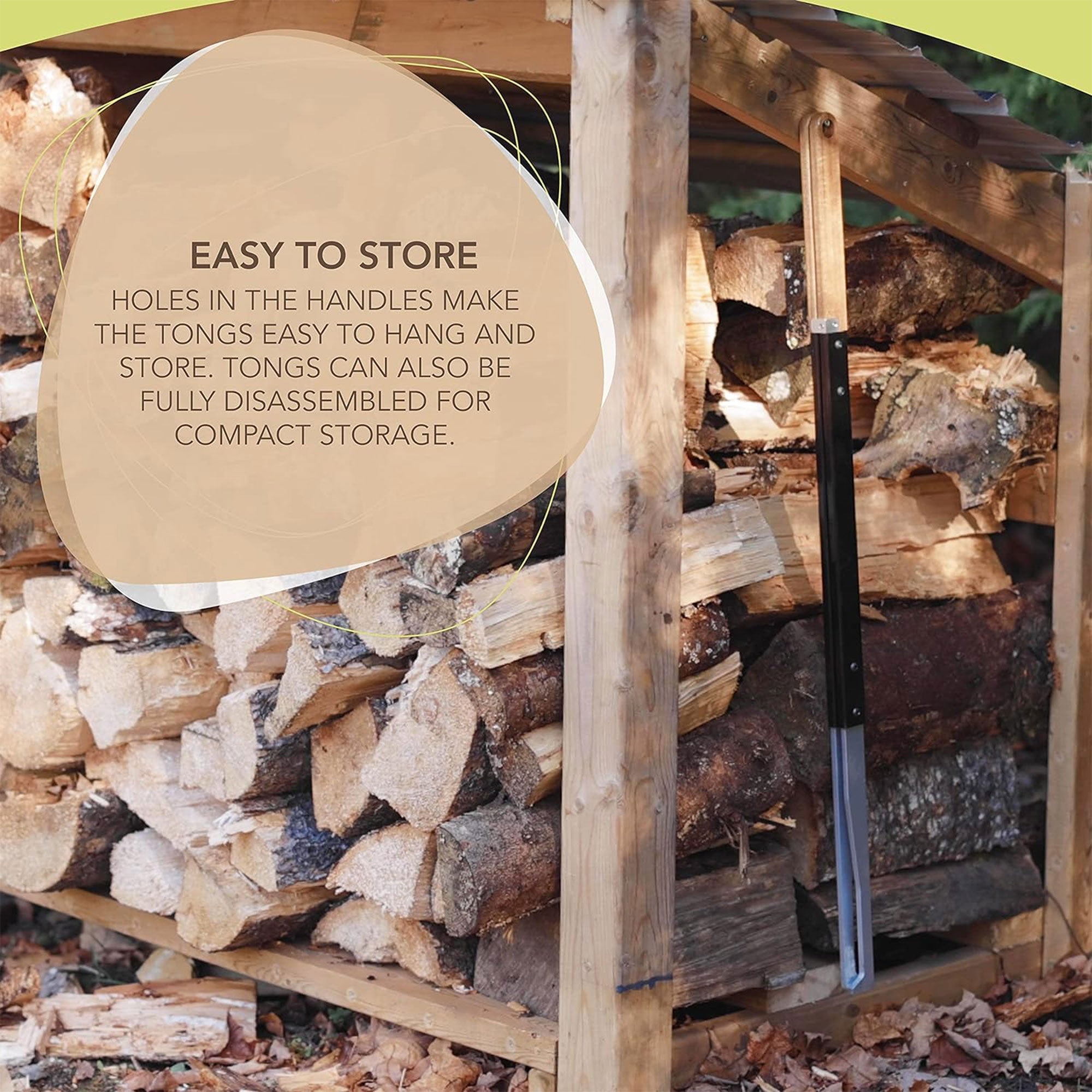 • Fire tongs allow you to easily and safely move logs onto and within a fire