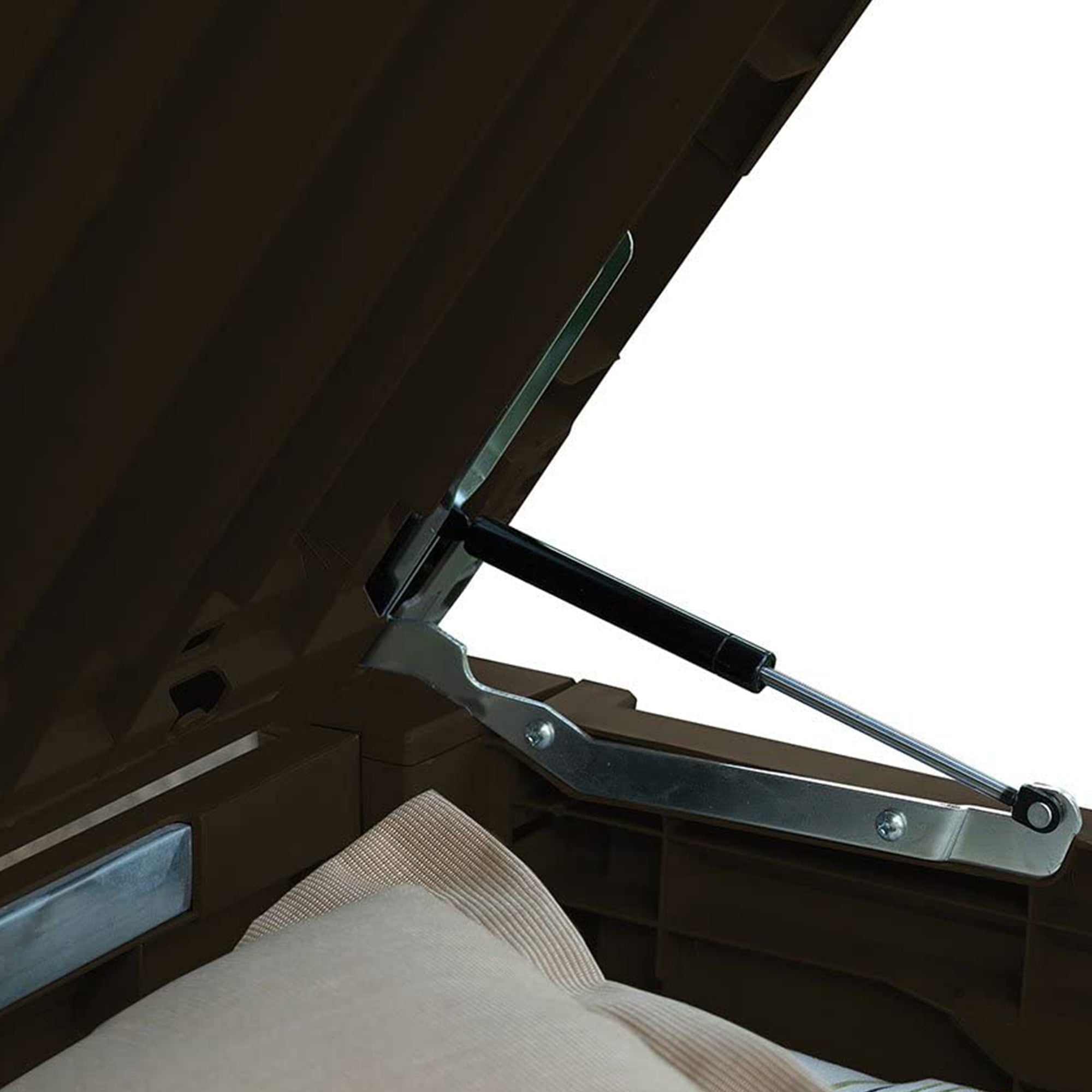 You can comfortably seat 2 adults allowing this storage box to double as a patio bench seating solution holding up to 804 pounds. With the stylish wood panel finish, this storage bench fits in with any outdoor theme or patio decor that does fade in the sun. The automatic opening system allows easy access to your contents inside.