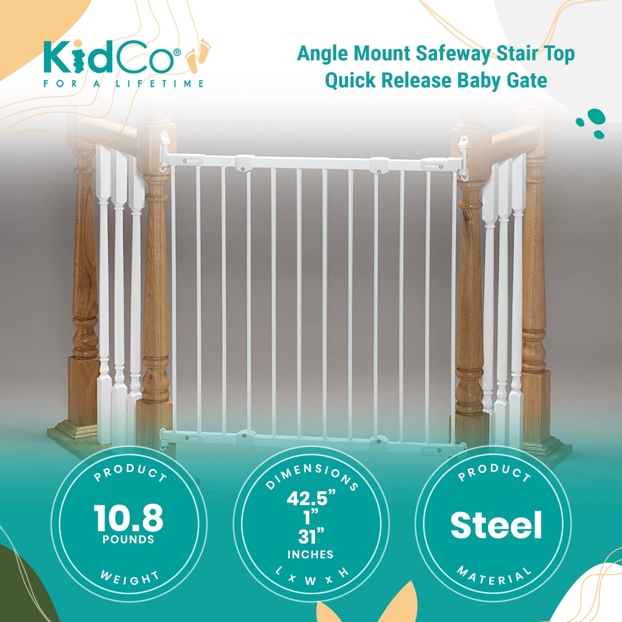 Safety always comes first with infants, especially around stairs. Blocking access to the top of the stairs, the KidCo Angle Mount Safeway Stair Top Baby Gate ensures your child can't reach the stairs by themselves, stopping accidents.