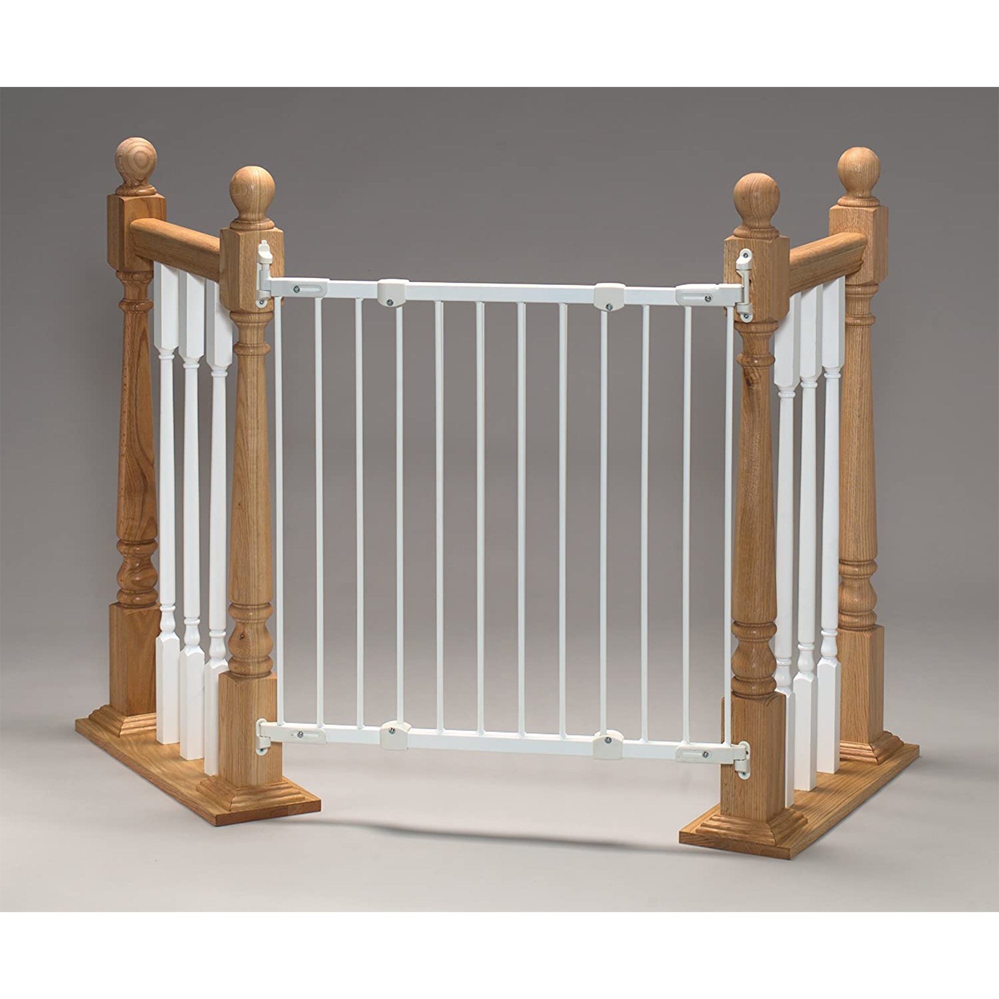 - Designed specifically for use at the top of stairs, but also blocks hallways, divides rooms, and secures high-traffic areas