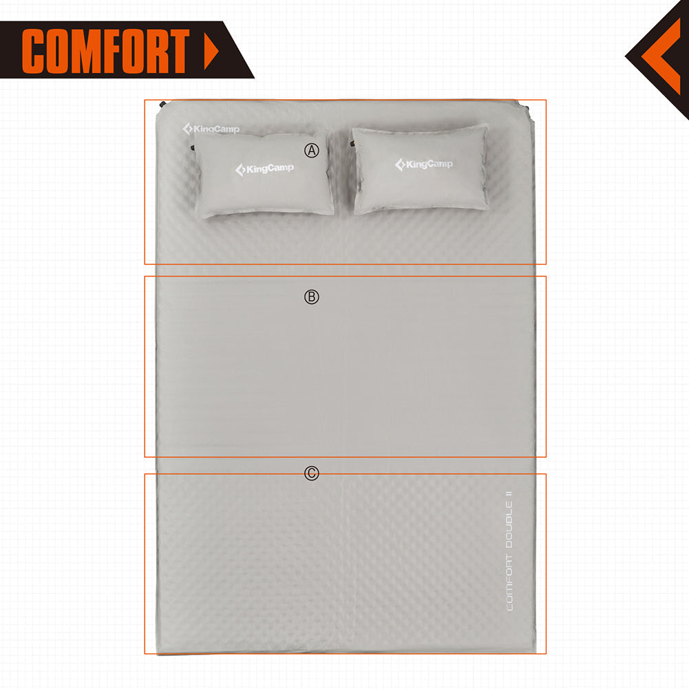 KingCamp Double Self Inflating Camping Sleeping Pad Mat with 2 Pillows, Gray