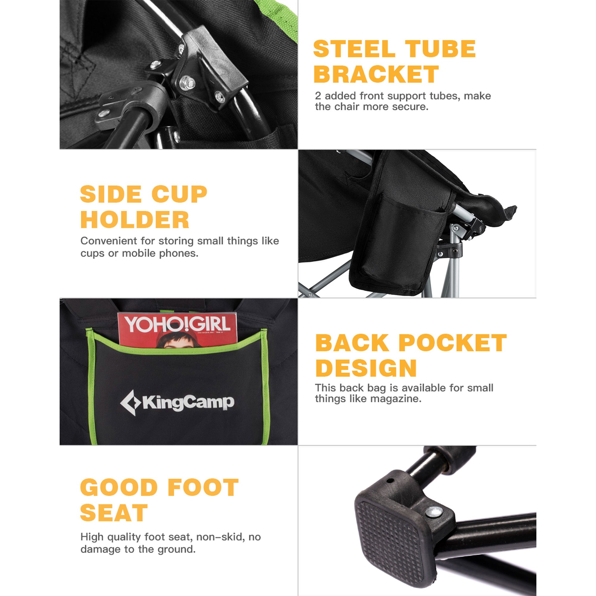 KingCamp Foldable Saucer Camping Lounge Chair w/ Cupholder Storage, Black/Green
