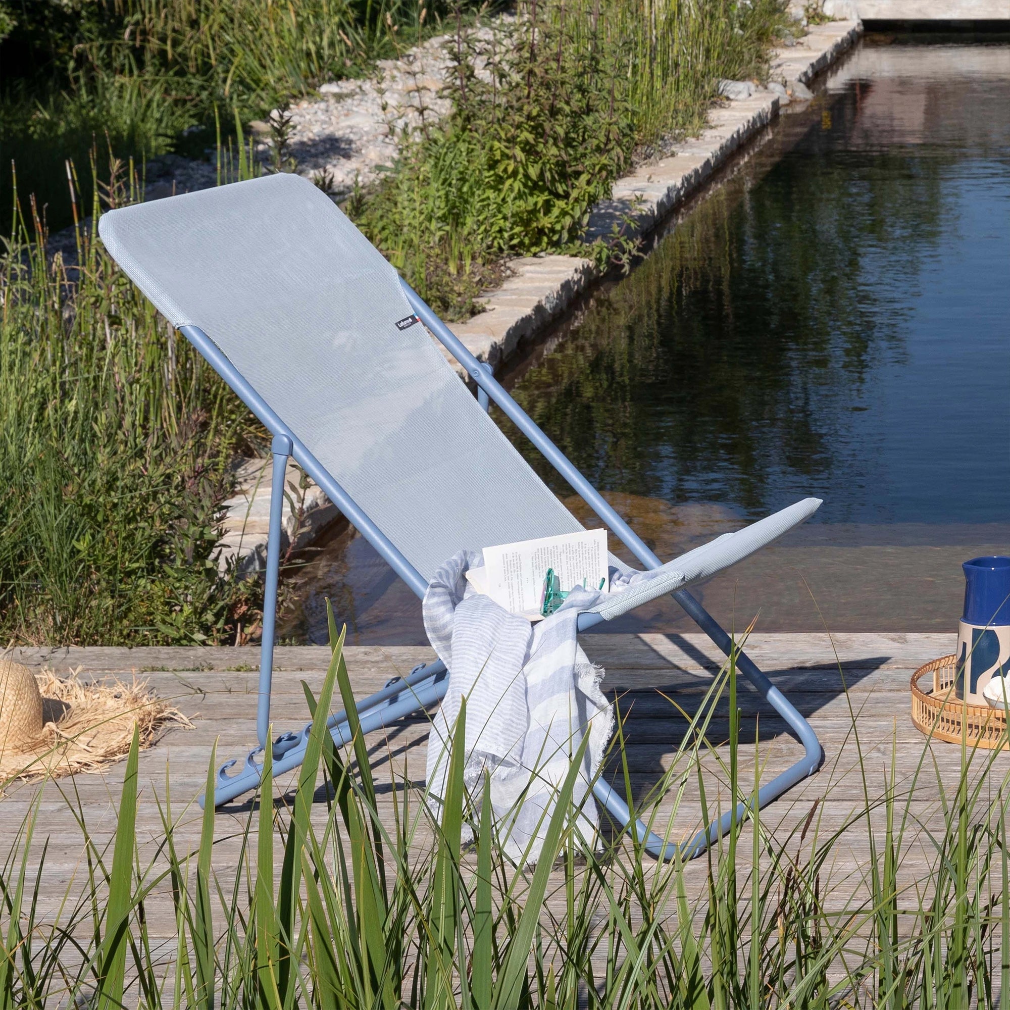 The subtly shaded color block collection will bring a contemporary touch to your outdoor space. Sit back and unwind in your backyard, at the beach, or while watching your favorite sporting event with the Lafuma Maxi Transat Colorblock Steel Framed Mesh Ultra Compact Foldable Reclining Sling Deck Chair, this chair offers unrivaled solace and convenience.