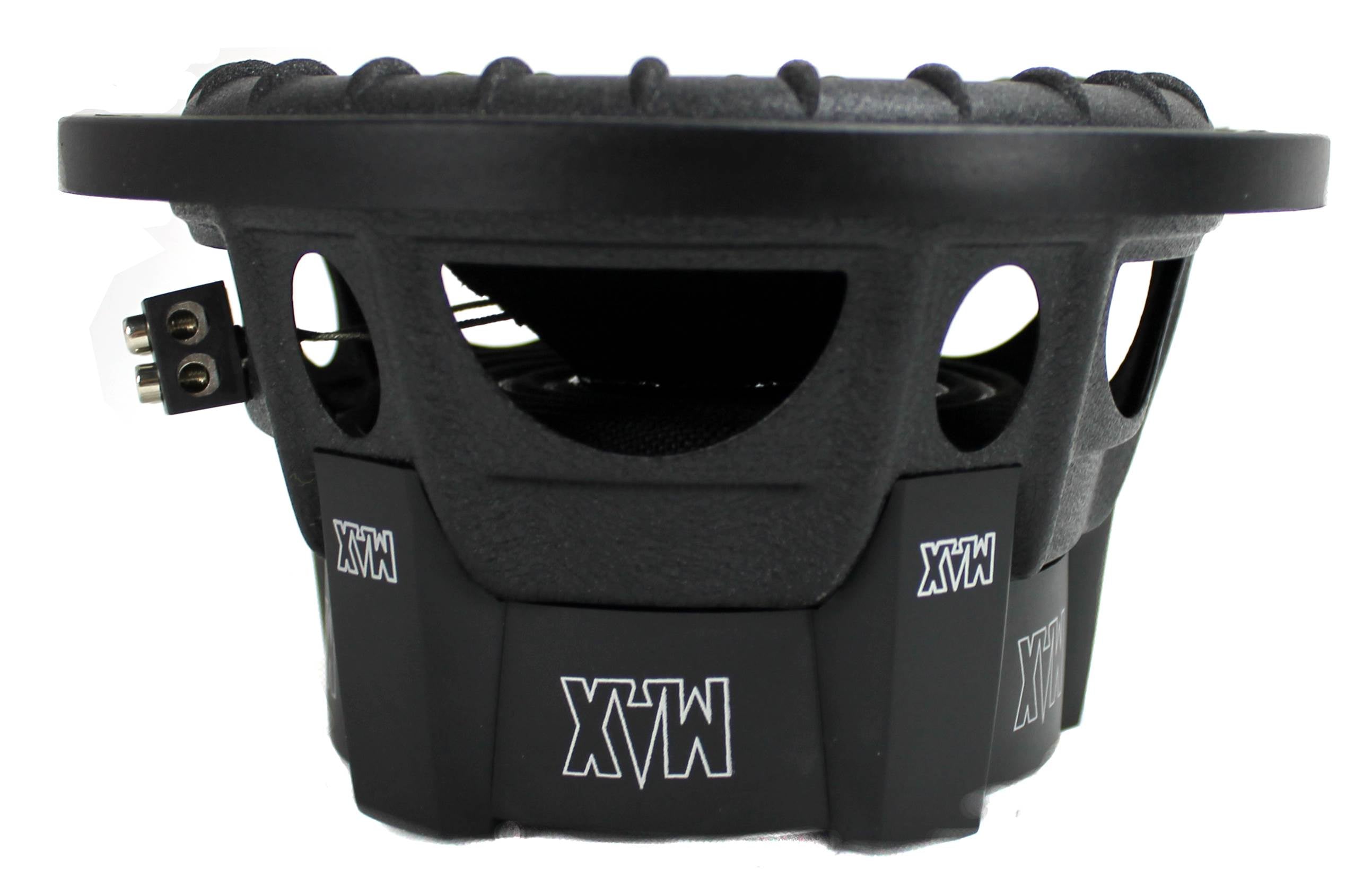 Take your sound to the MAX with the Lanzar MAXP84 MAX-series subwoofers. This 8' sub is specially designed to push up to 800 watts of bone-shattering bass, thanks to the 1.5' high-temperature aluminum voice coil and 50 oz. magnet. It all sits on a non-press paper cone with specially treated foam edge suspension for a clean, distortion-free low-end. The rubber magnet boot cover keeps your equipment safe and extends the life of the product. 4 ohm impedance.