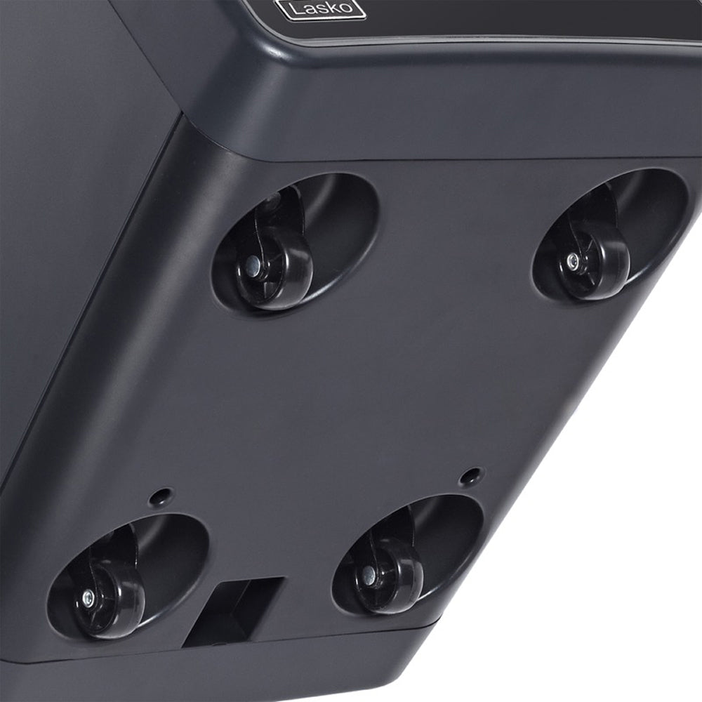 Thanks to 4 wheels and cool-to-touch exterior, the space heater moves easily from room-to-room. Its compact design fits anywhere, measuring 17 inches long, 22 inches wide, and 16.5 inches tall.