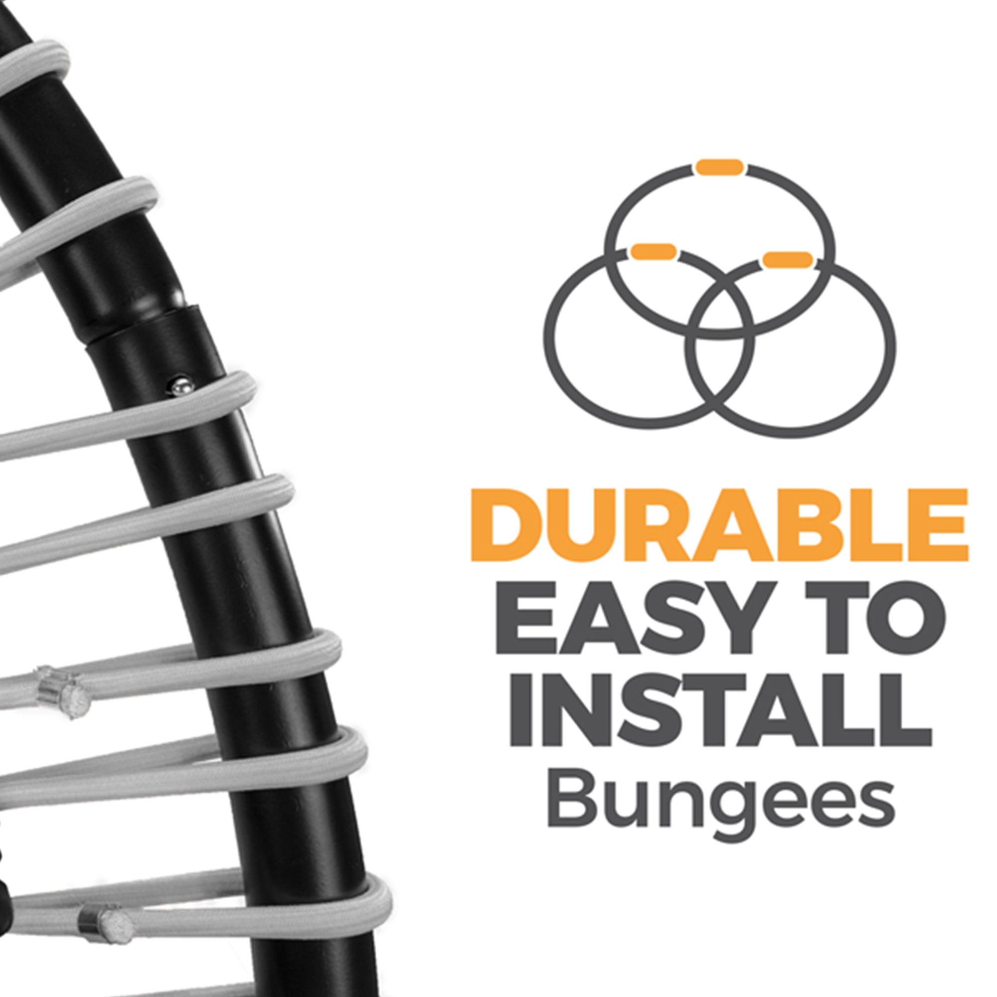 - Features quiet bungees with a firm bounce for solid, safe jumping without distracting noises