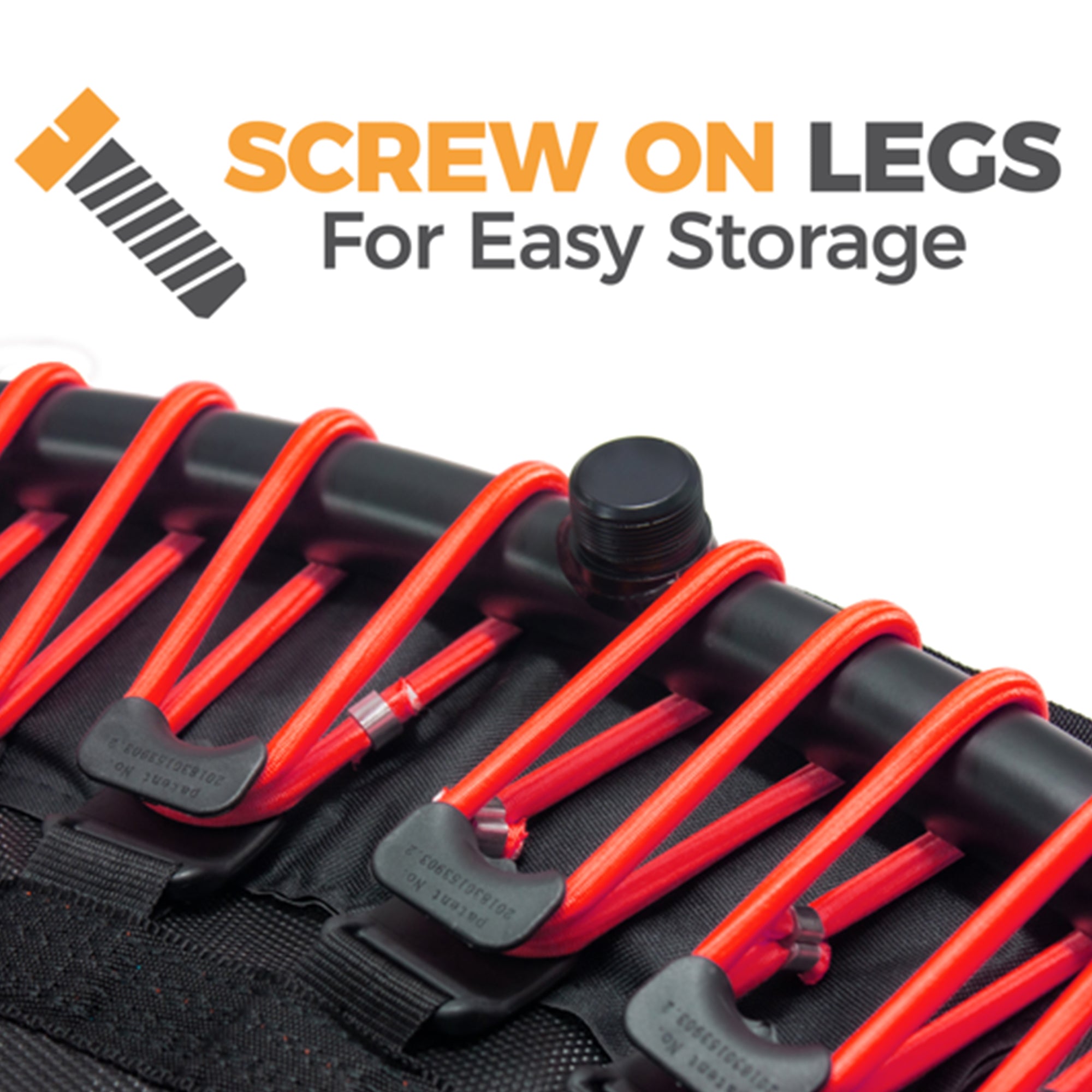 • Attach the bar to any 2 trampoline legs for simple assembly by slipping around the legs and reattaching the legs