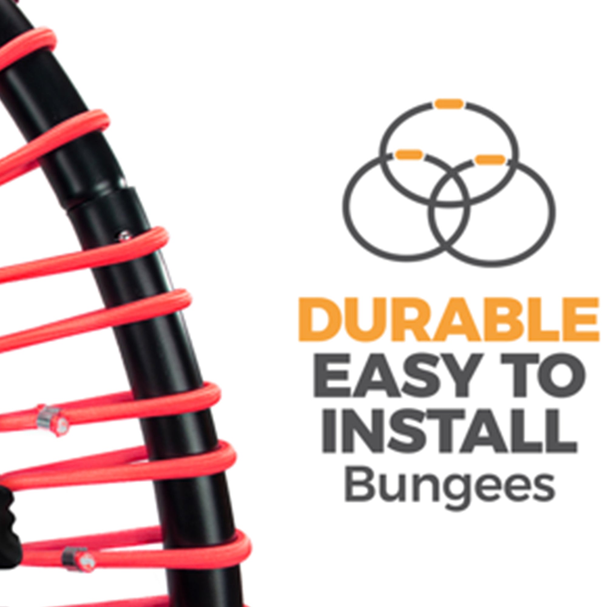 • Features quiet bungees with a firm bounce for solid, safe jumping without distracting noises