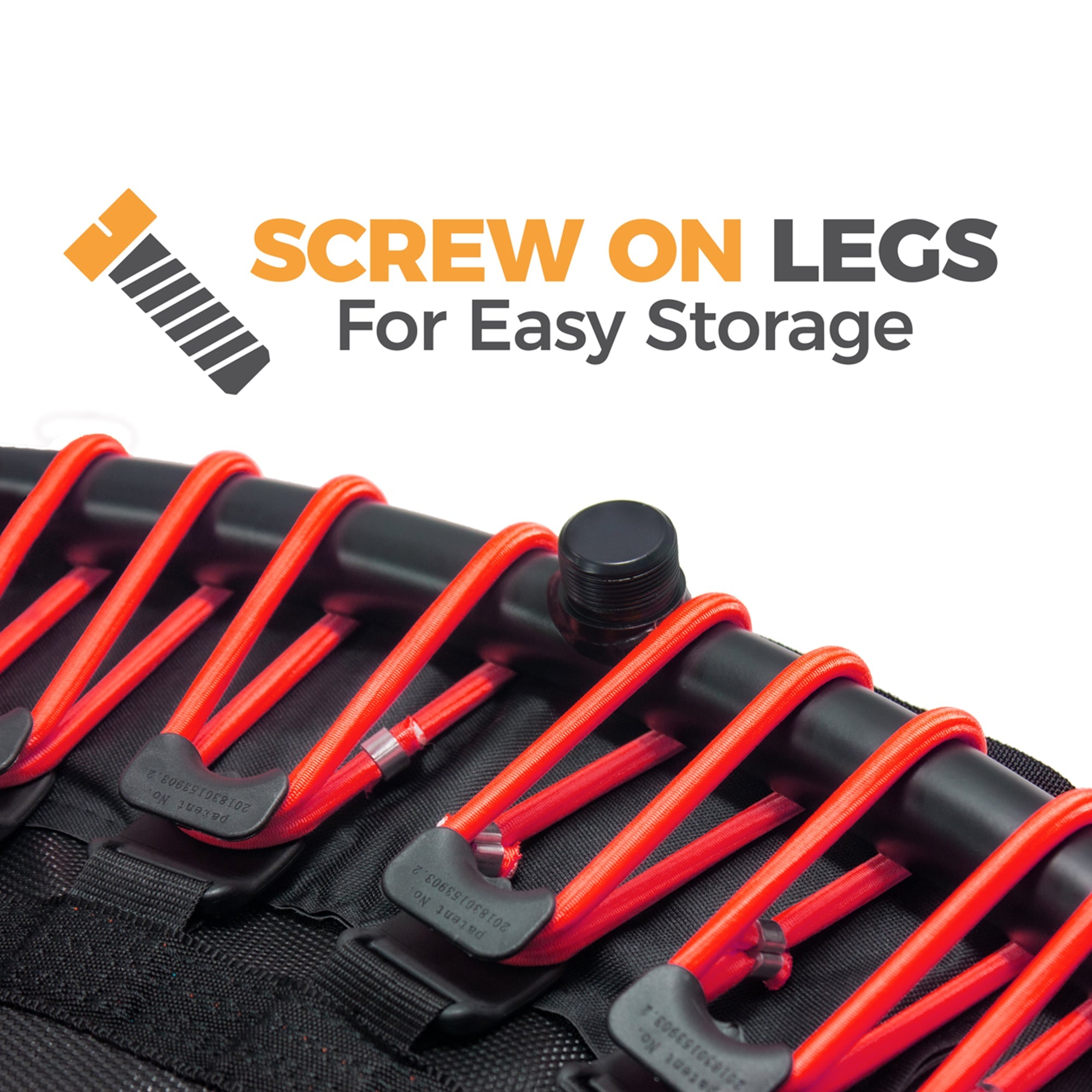 • Carbon steel frame with threaded legs allows you to twist the legs on and off for compact storage and easy transport