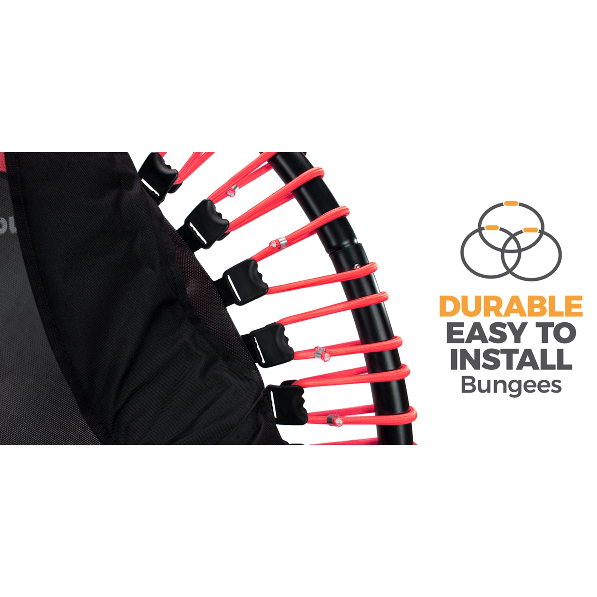 • Features quiet bungees with a firm bounce for solid jumps without distracting noise