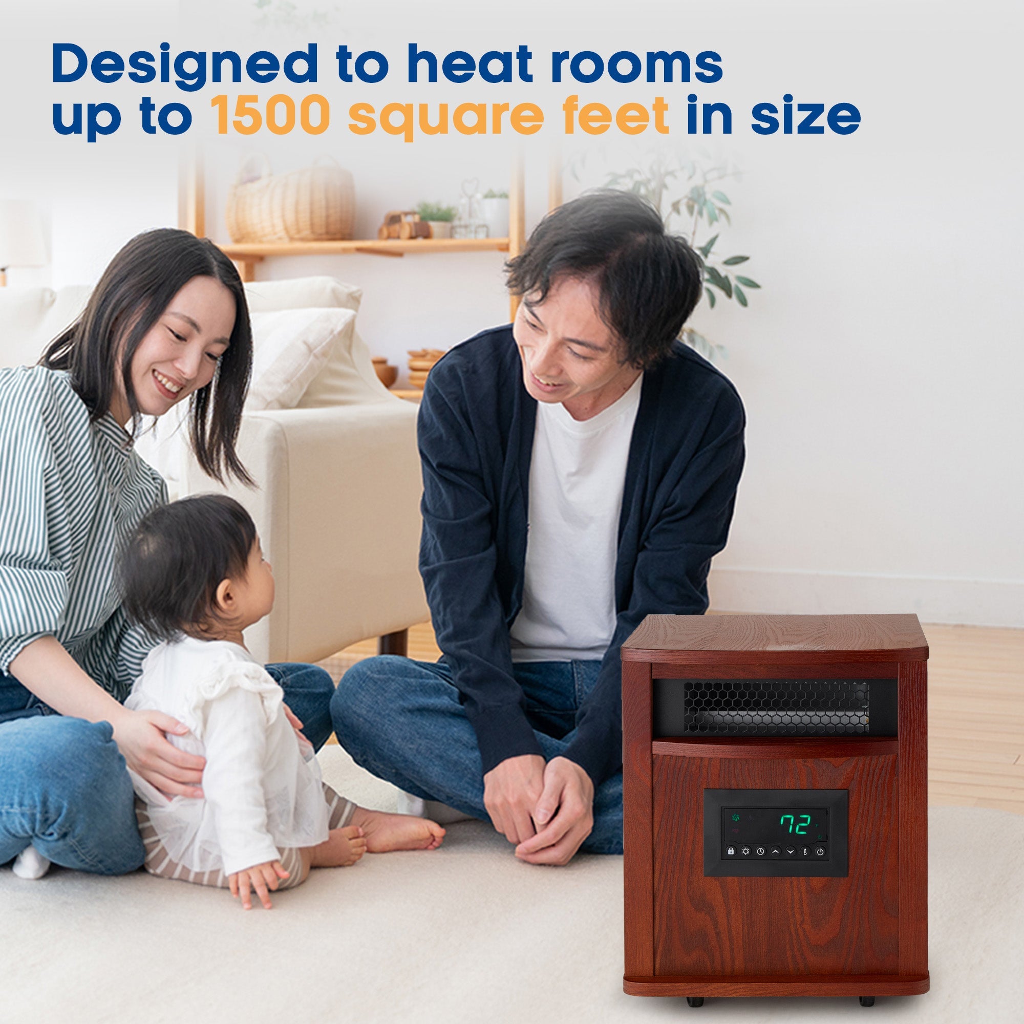 This indoor space heater is much like the infrared heating inside a toaster and is meant to heat objects in the room while providing a more natural warmth that won't dry out the air. Infrared heaters are designed to work in addition to your home's heating system. Designed to heat rooms up to 1500 square feet in size, you can be sure that everyone in the room will remain comfortable. Including 3 heating systems, smart programming, and remote controls, this warmer can accommodate whatever heating temperature you need.