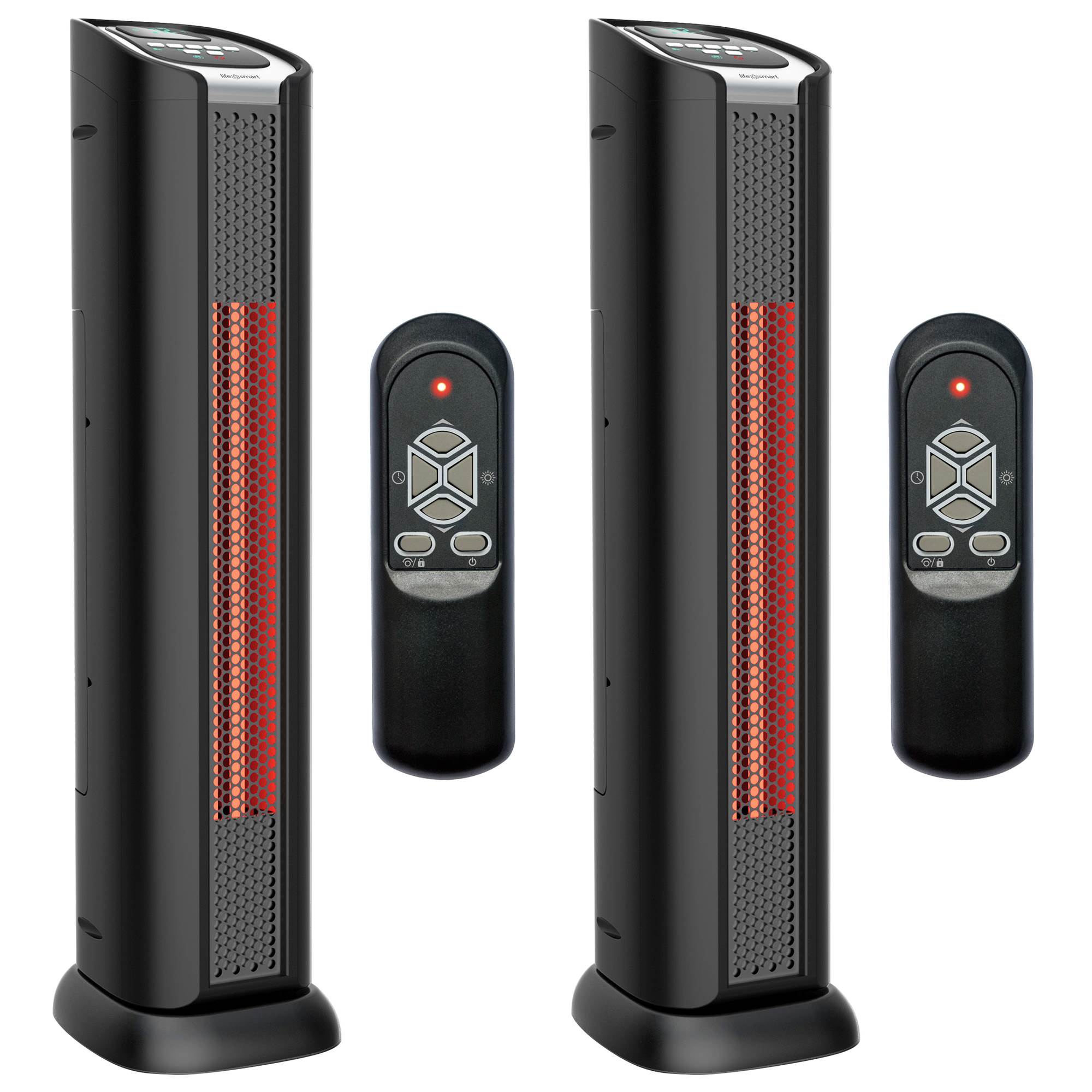 Warm up that cold spot in the room and place the heater next to your couch while you curl up and watch a movie. You'll love how toasty you feel when you bask in the warmth of the Lifesmart 24-Inch Tower Infrared Heater and Fan. This package includes 2 heaters.